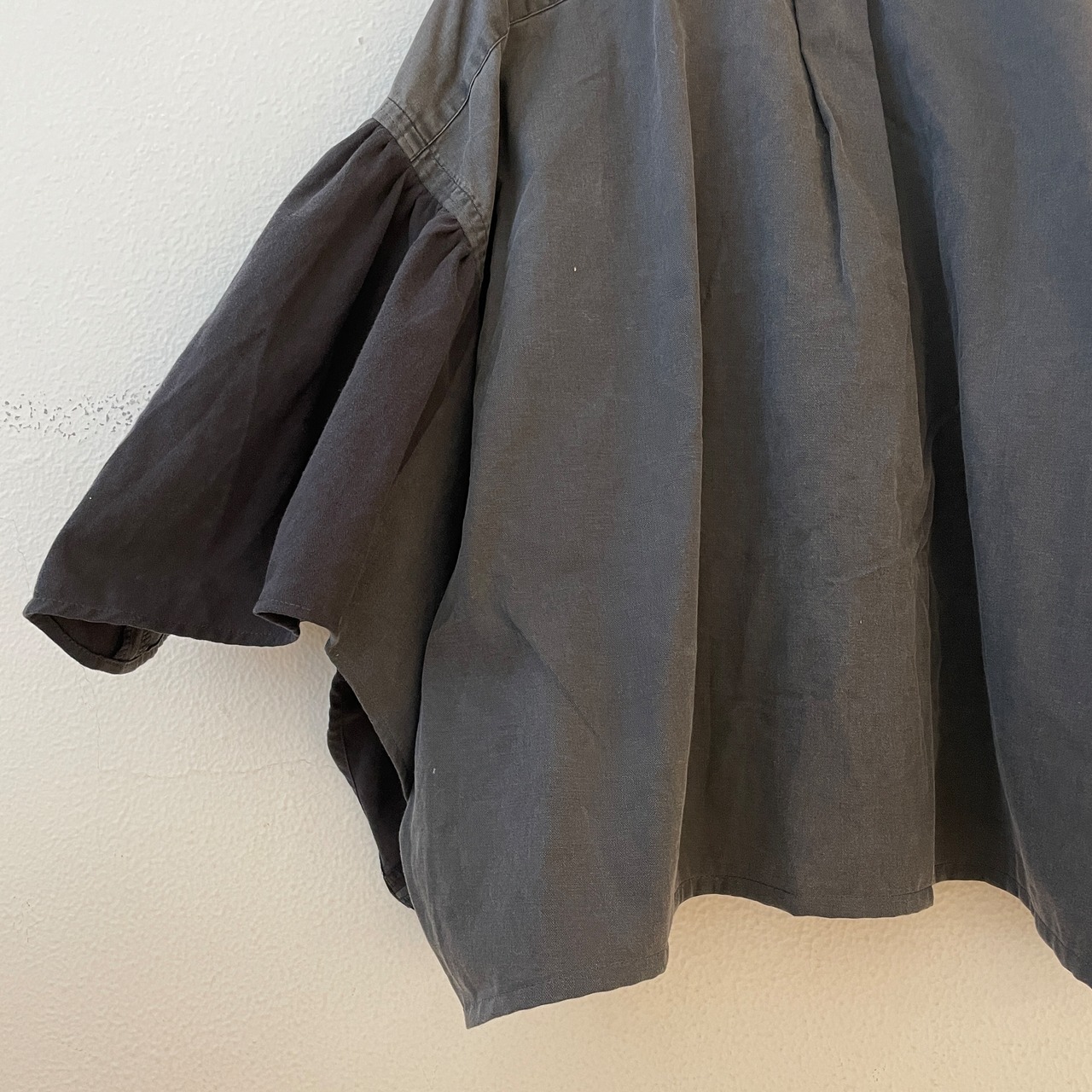 今回はお袖にこだわり、usedのラルフシャツを2枚贅沢に使用し、ギャザーをたっぷりと付けることによって、お袖のボリュームがより一層際立つ作りにいたしました。