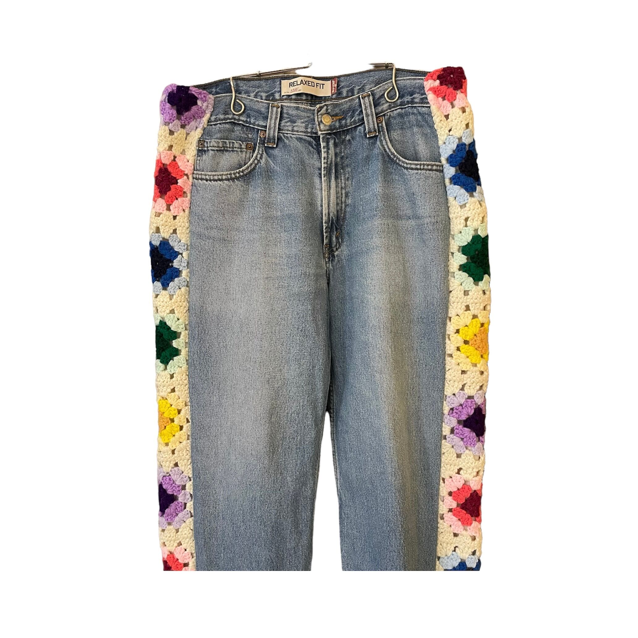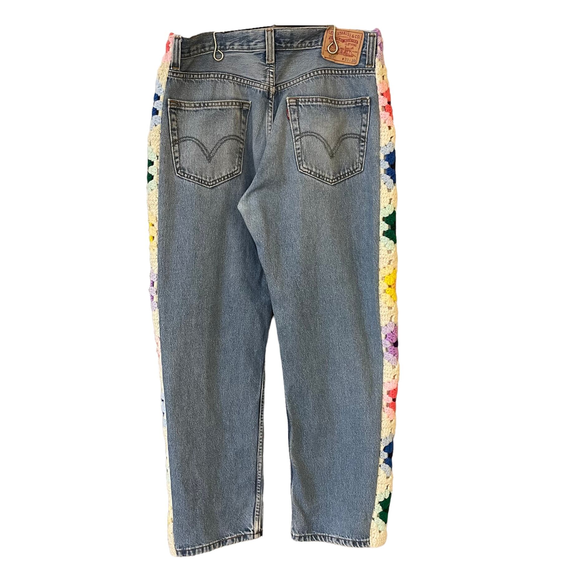 リーバイス550を一旦分解し、サイドにusedのクロッシェニットを付け加え再構築した、オリジナルの一本◎
