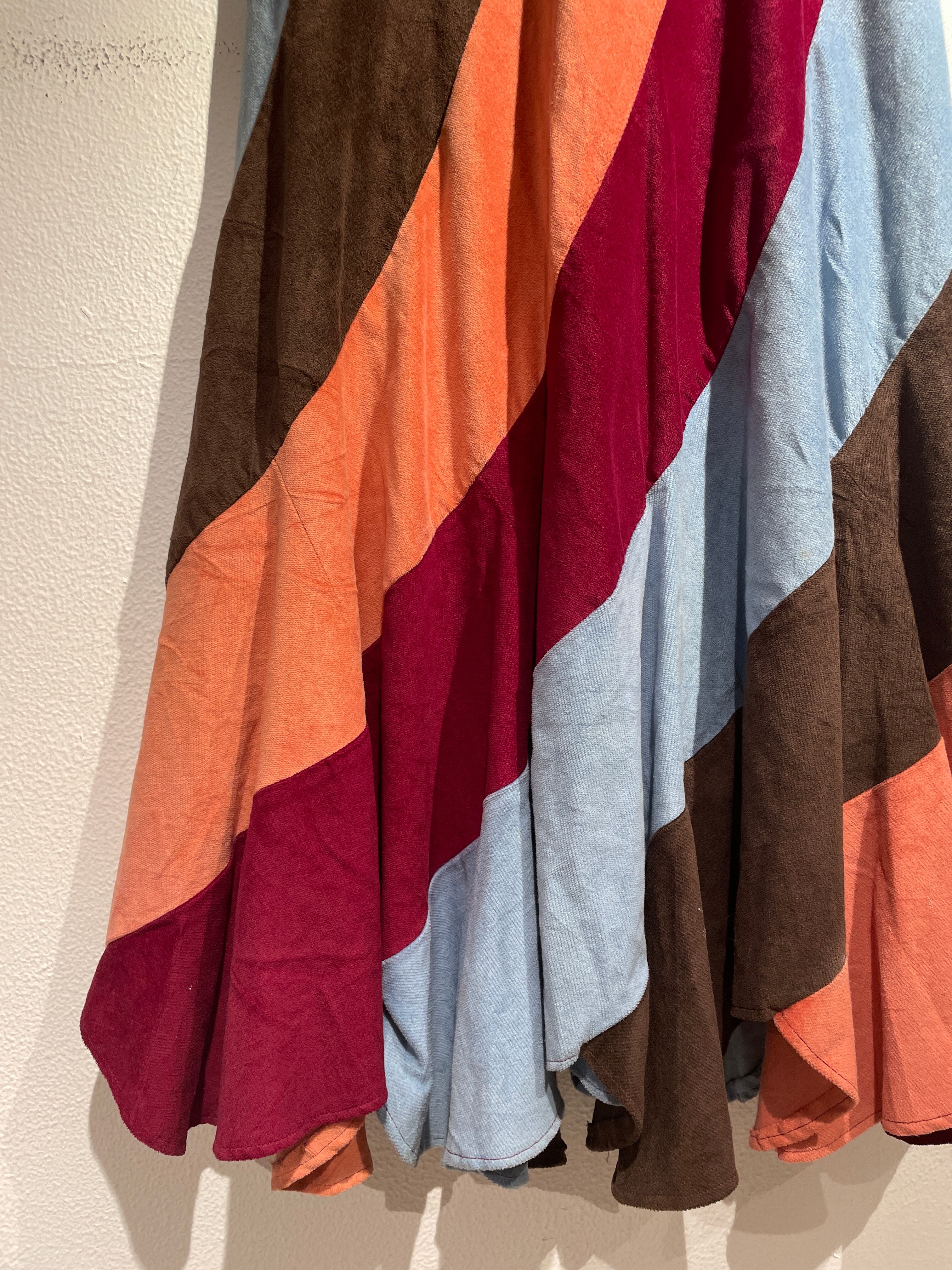 カタツムリの殻を思わせる、螺旋状に布を合わせたエスカルゴスカートはウエストから裾に向かってのボリューム感が綺麗なデザイン。