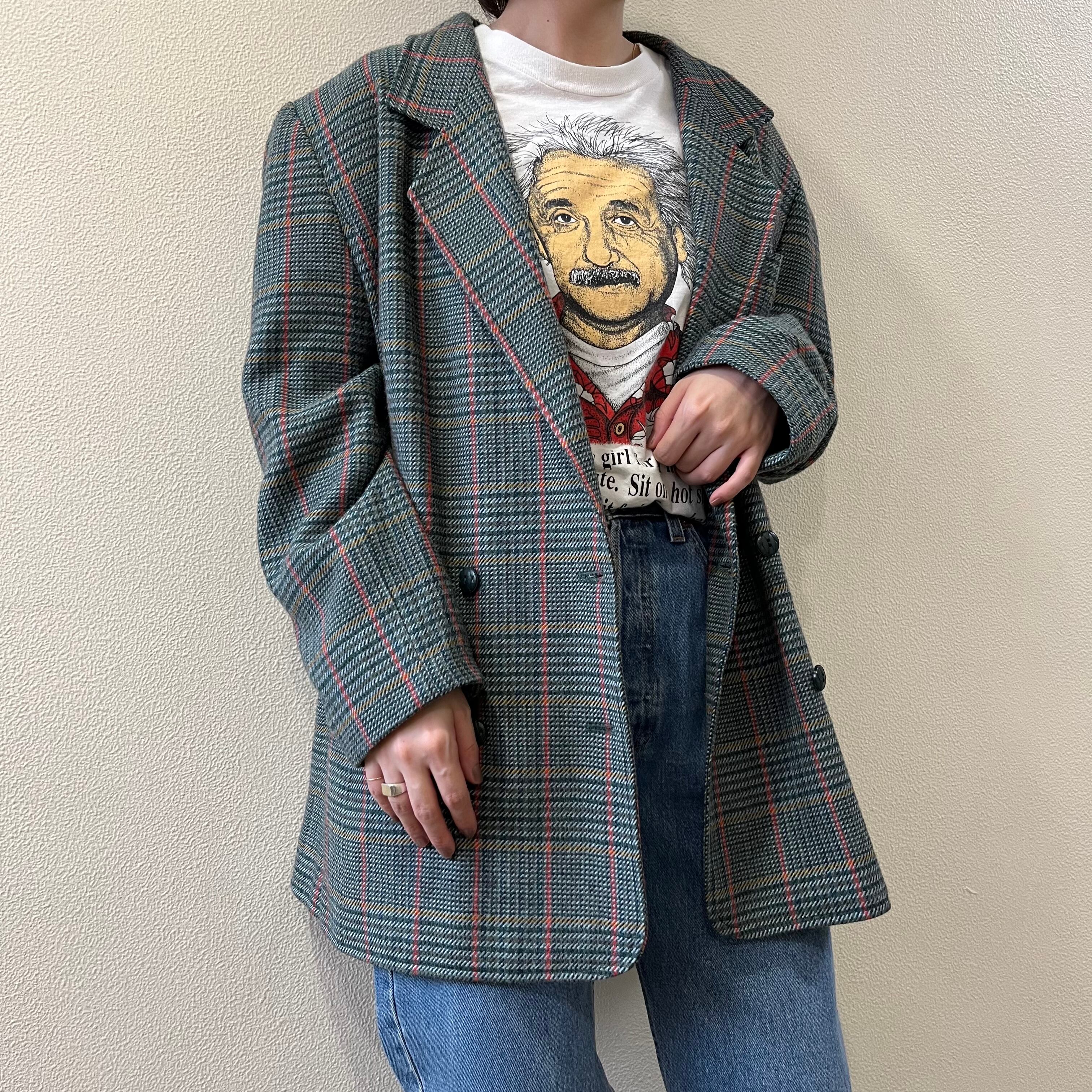 ダブルボタンとチェックがお洒落なジャケット。オーバーサイズなので羽織っていただくだけでカッコよく決まります◎また後ろのベルトもアクセント。ロンTEEやスウェットなどと合わせて是非!
