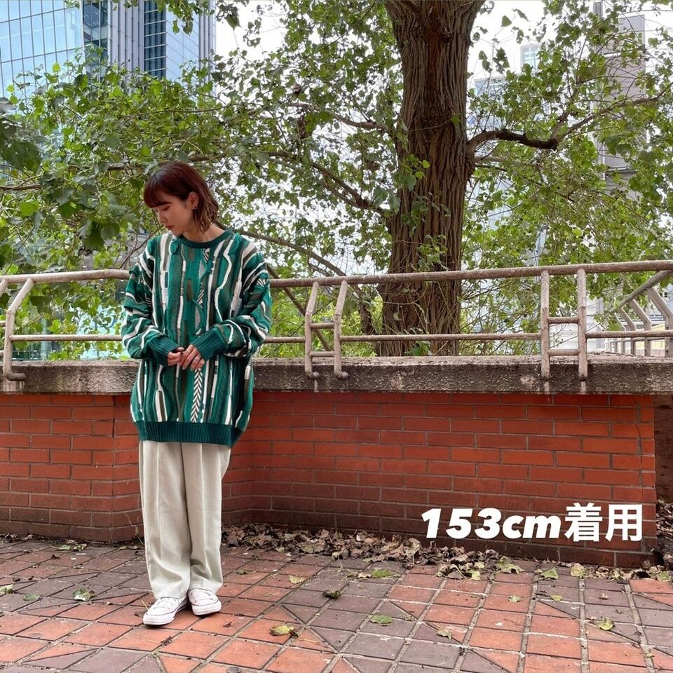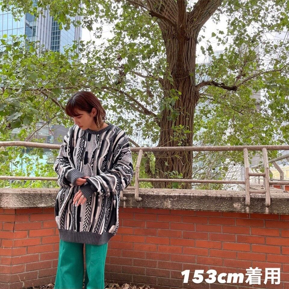 90sのたっぷりしたサイズ感と袖のダボつきのあるシルエットは、男女問わず様々なアイテムとのコーディネートが可能な3D ニットです。