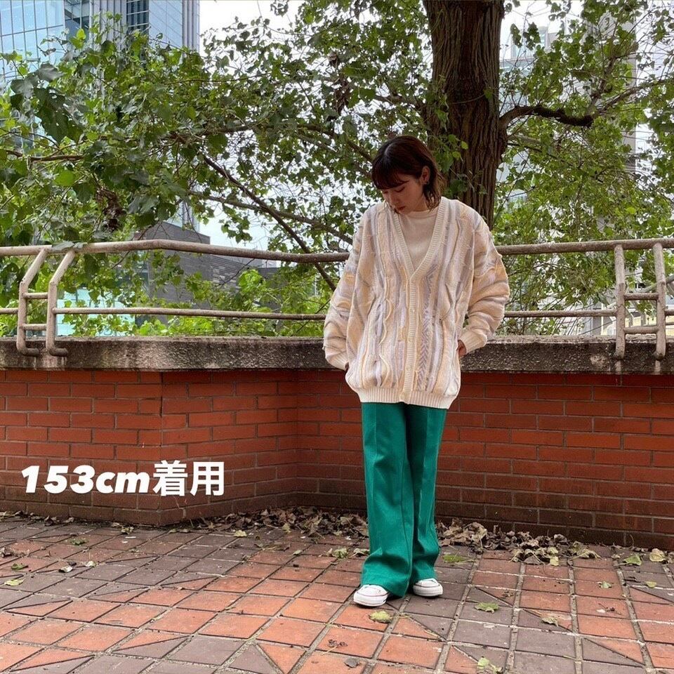 90sのたっぷりしたサイズ感と袖のダボつきのあるシルエットは、男女問わず様々なアイテムとのコーディネートが可能なカーディガンです。