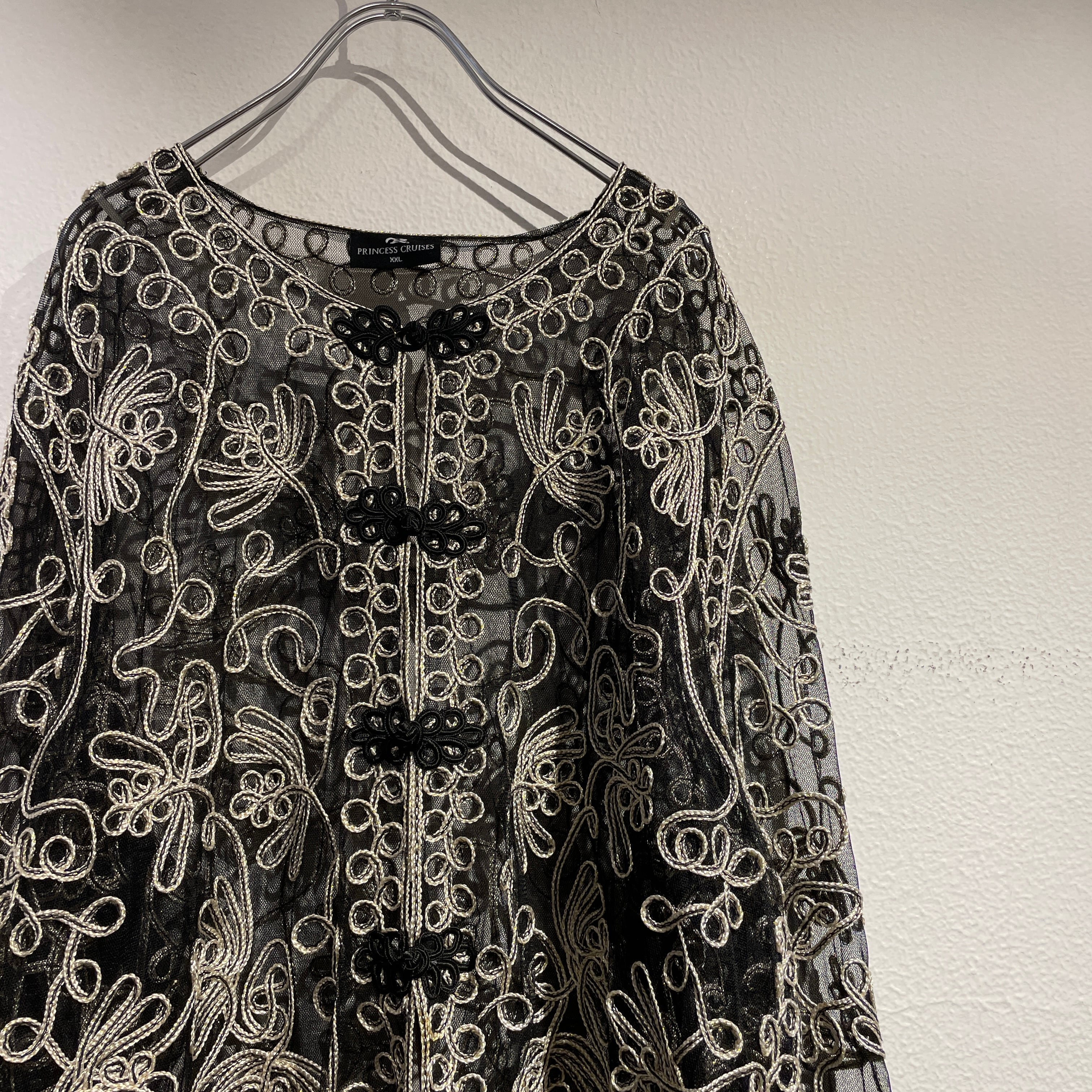 シアーメッシュ素材にテープ刺繍が施されたシャツ。