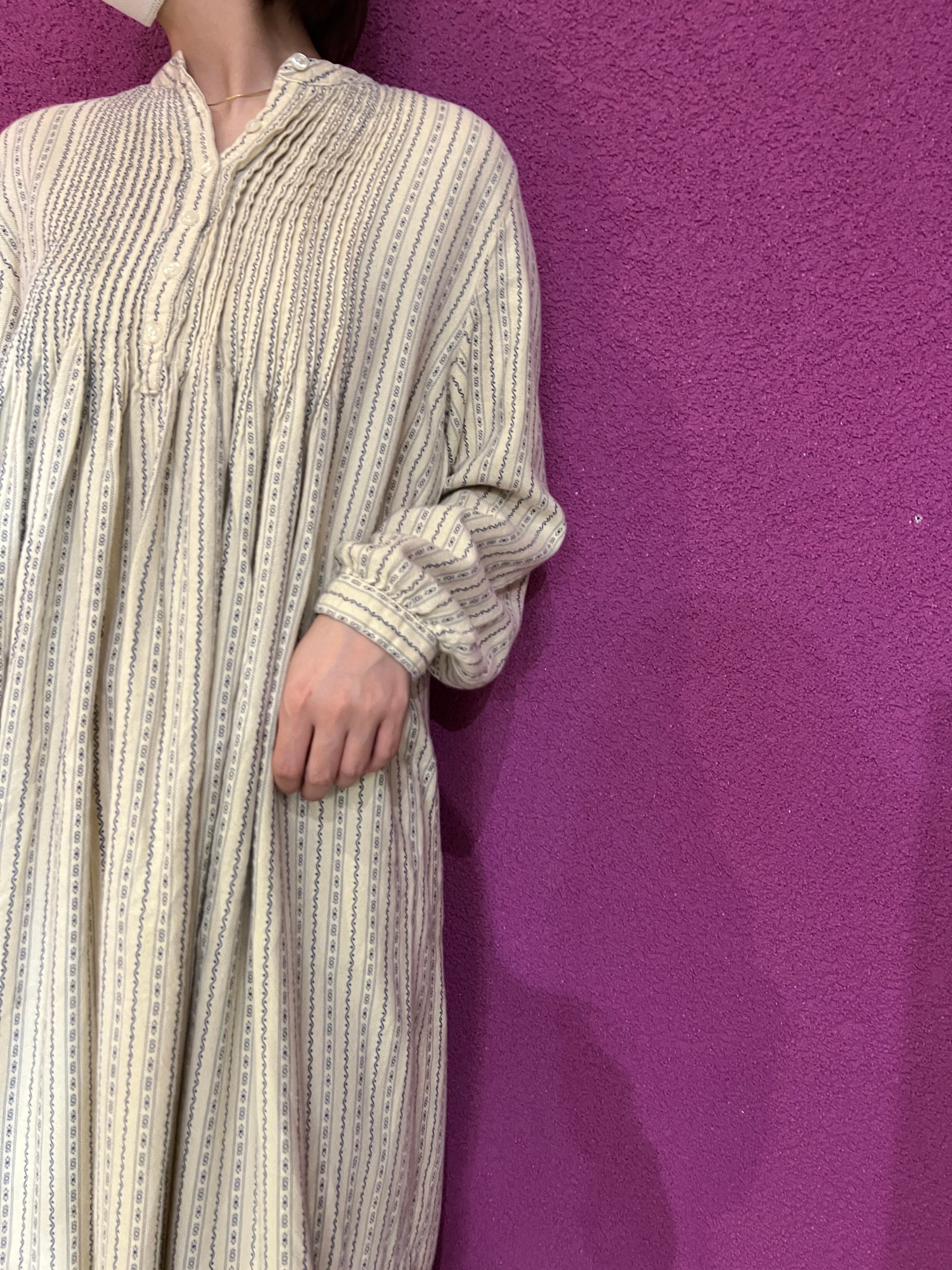 こちらのカラーはアイボリー×ブルーとなっております。着丈は113cmと、低身長の方にも着ていただきやすく、ボトムスをレイヤードしてもかわいいアイテムです!