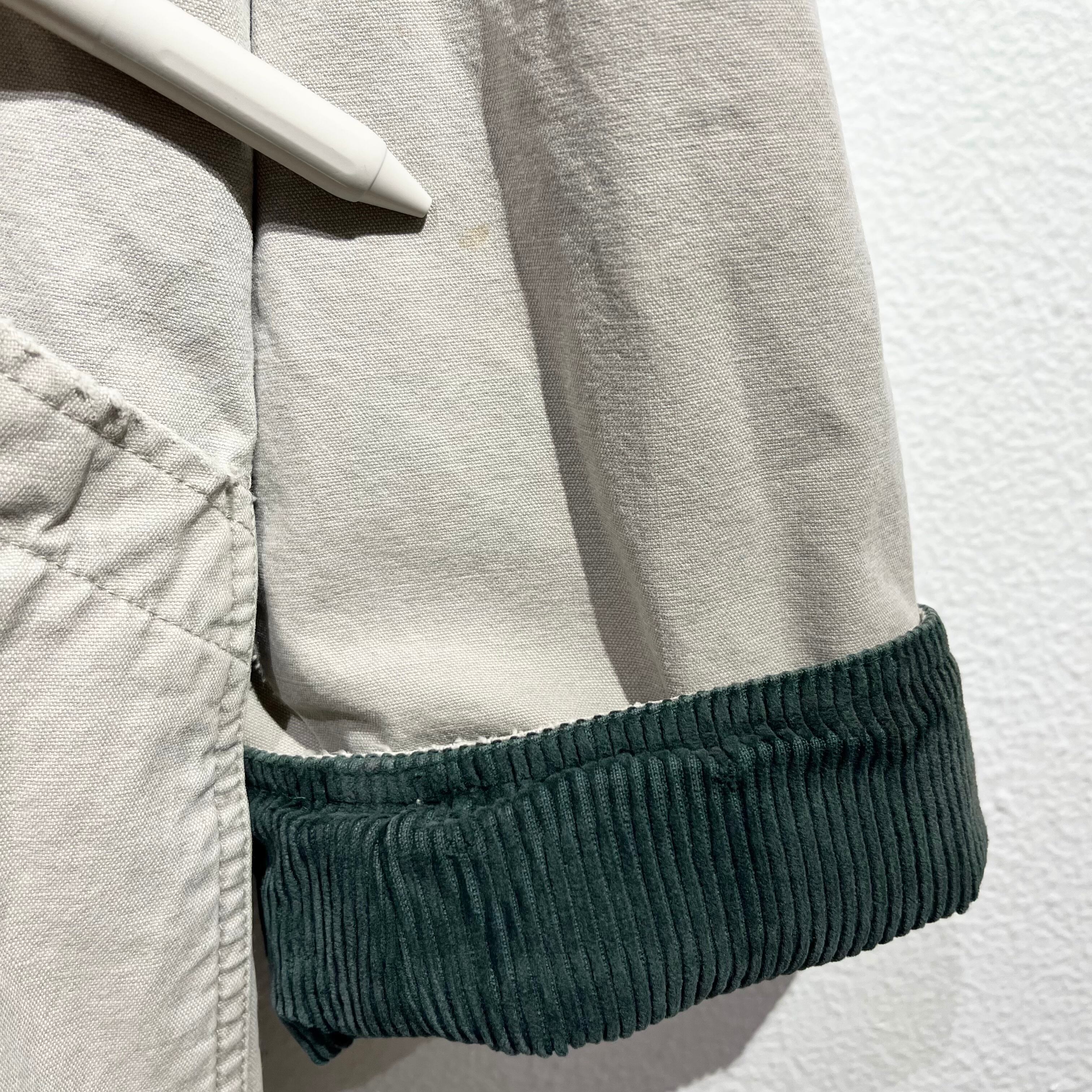 爽やかなアイボリーカラーにカーキのコーデュロイ切り替えが可愛らしい一枚。