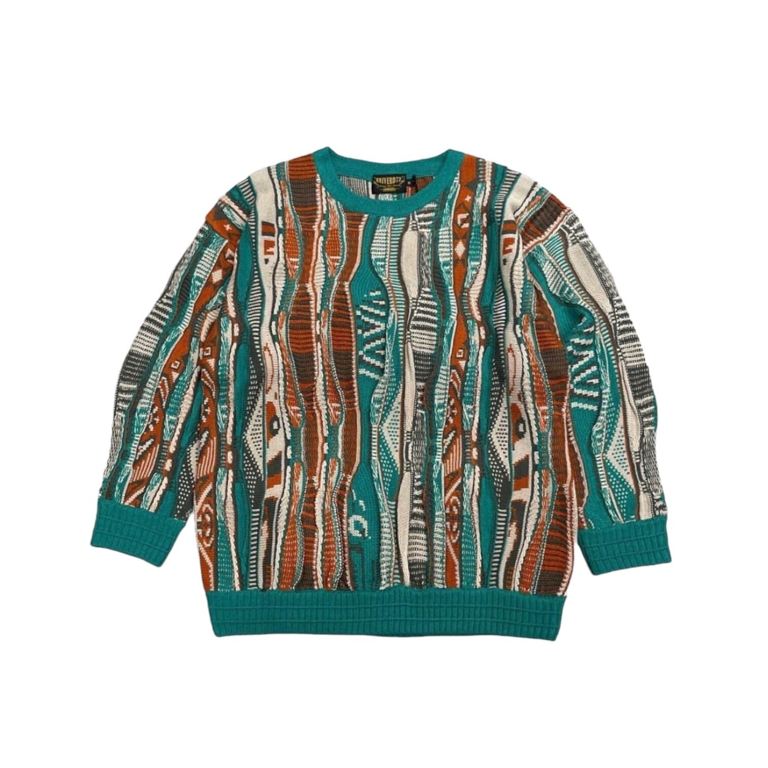 立体的に編み立てたジャガードを横使いにし、ピンタックのリブを採用していますので、90sの古着に近いしっかりとした生地感と風合いに仕上がりました。