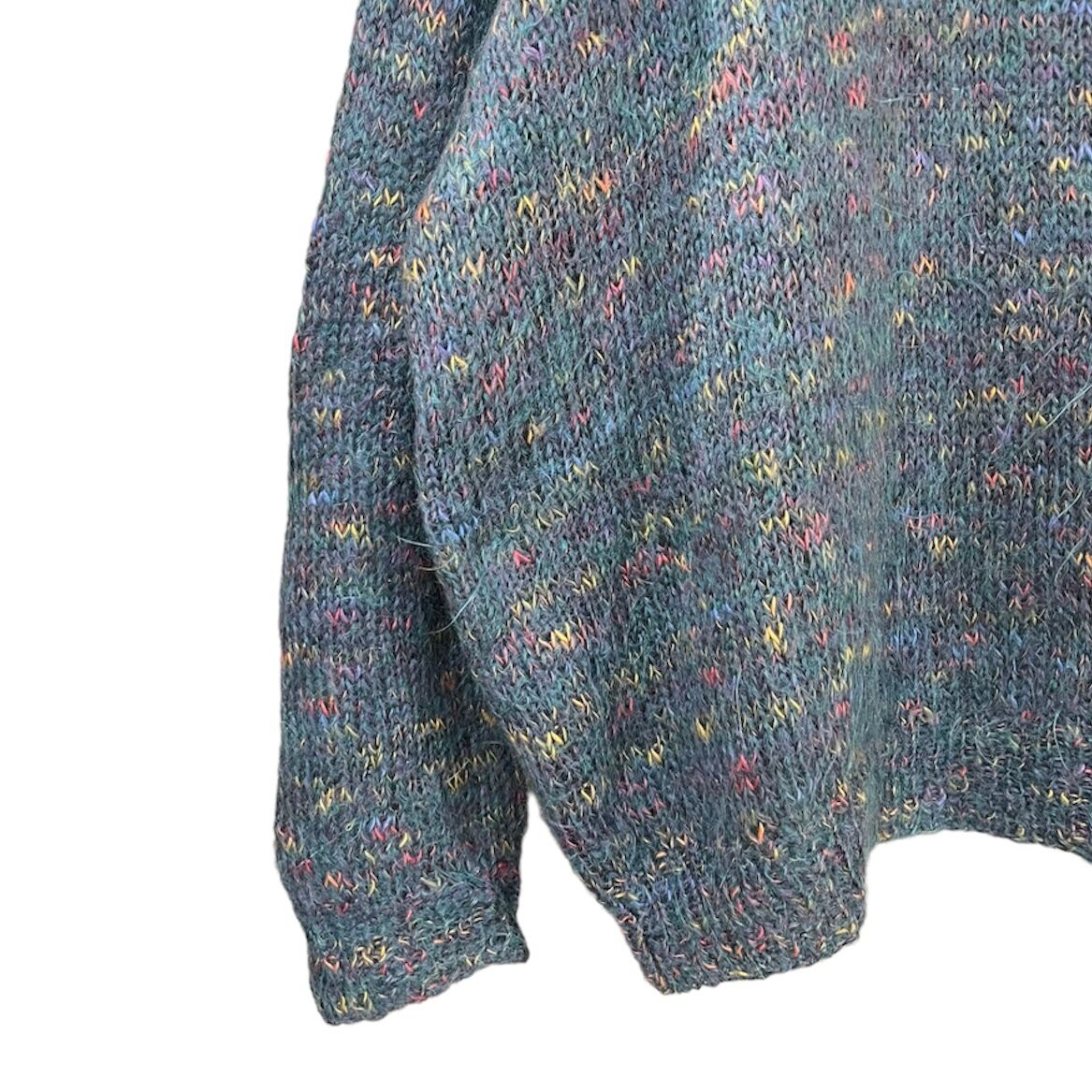 ブルーグレーのベースに、様々な色が編み込んであるニットです☺︎