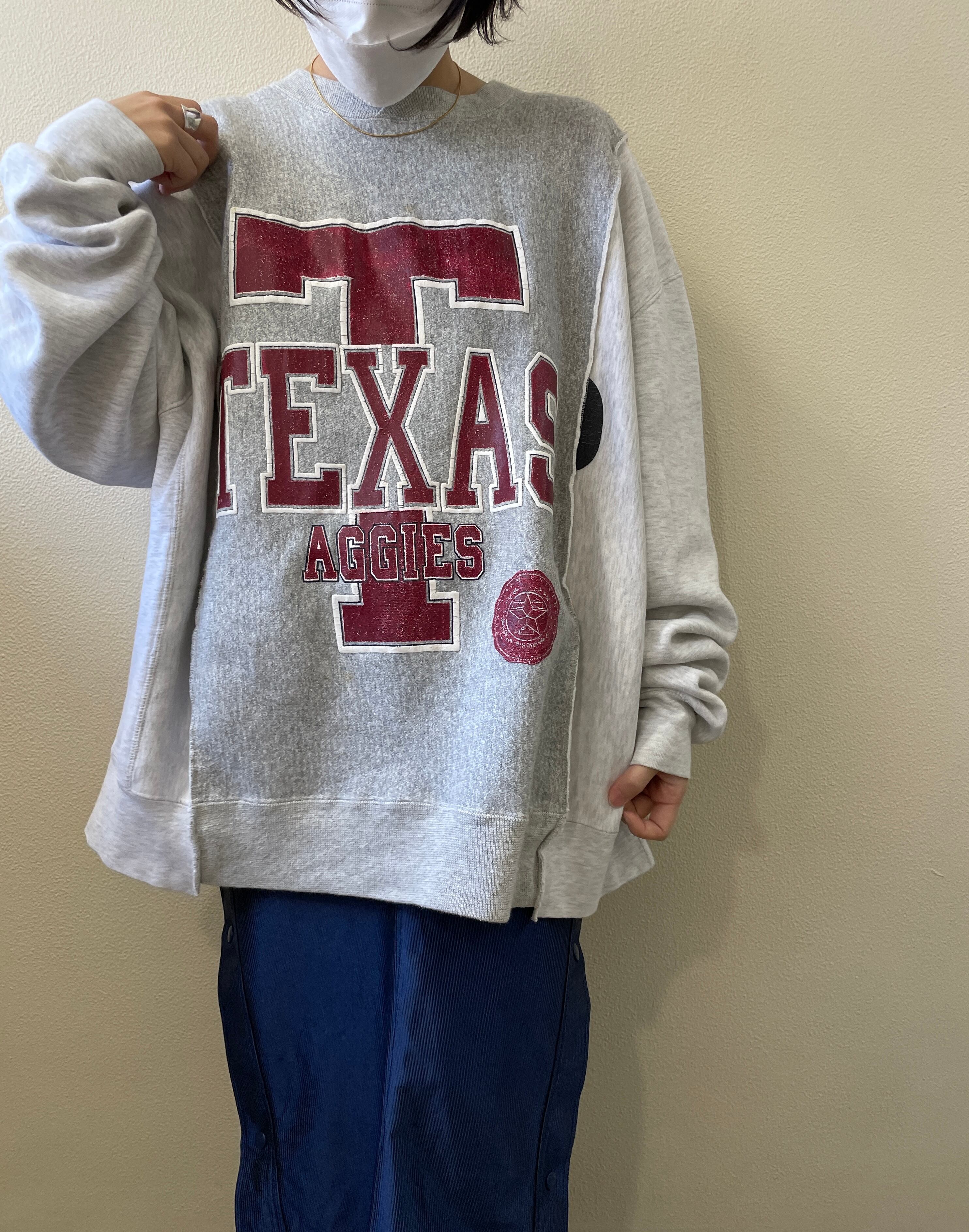 古着のスウェットを2枚分解し、ドッキングすることによって世界に1着しかない特別感のあるスウェットに仕上げました☺︎
