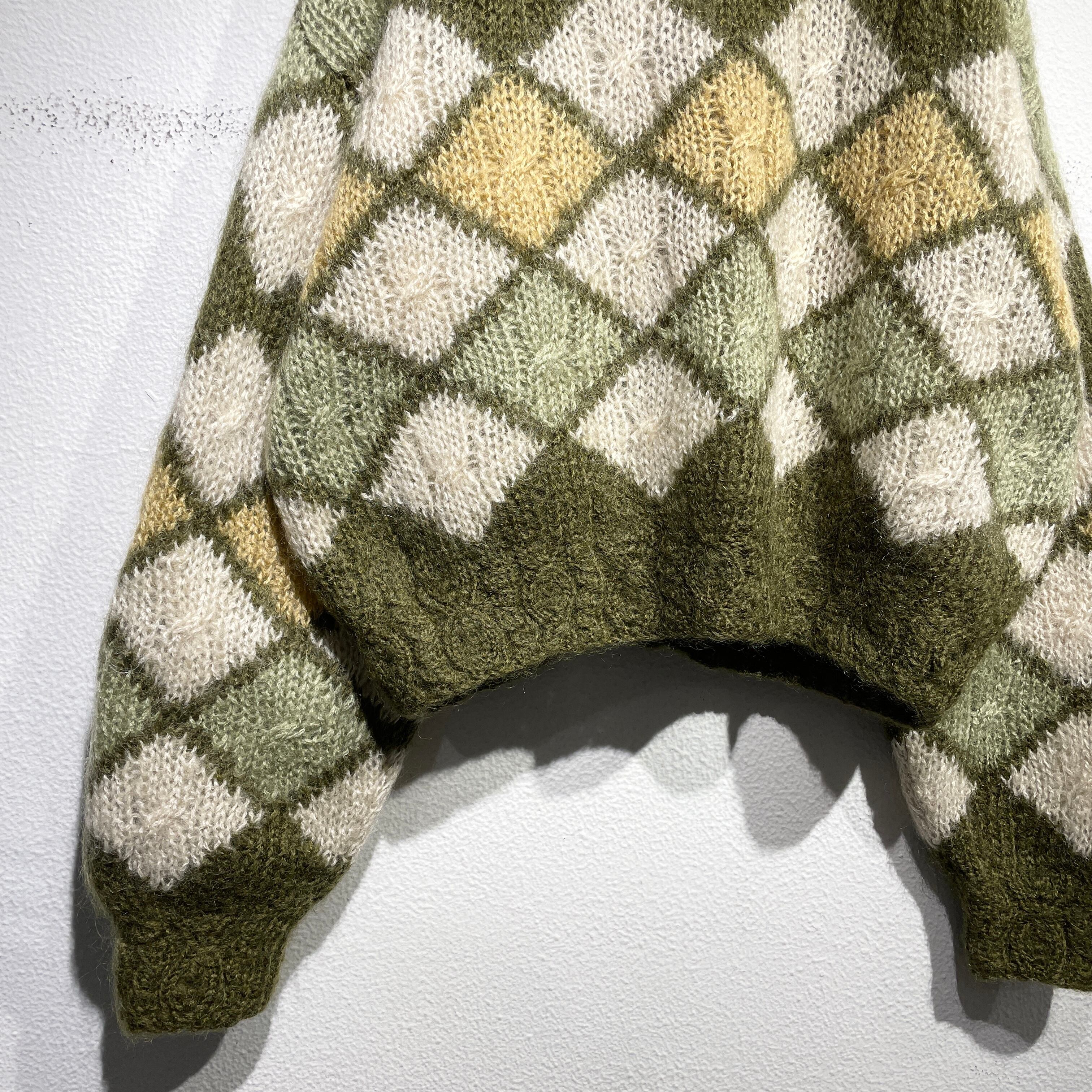 淡いグリーン調のアーガイル柄が可愛らしい一枚です。