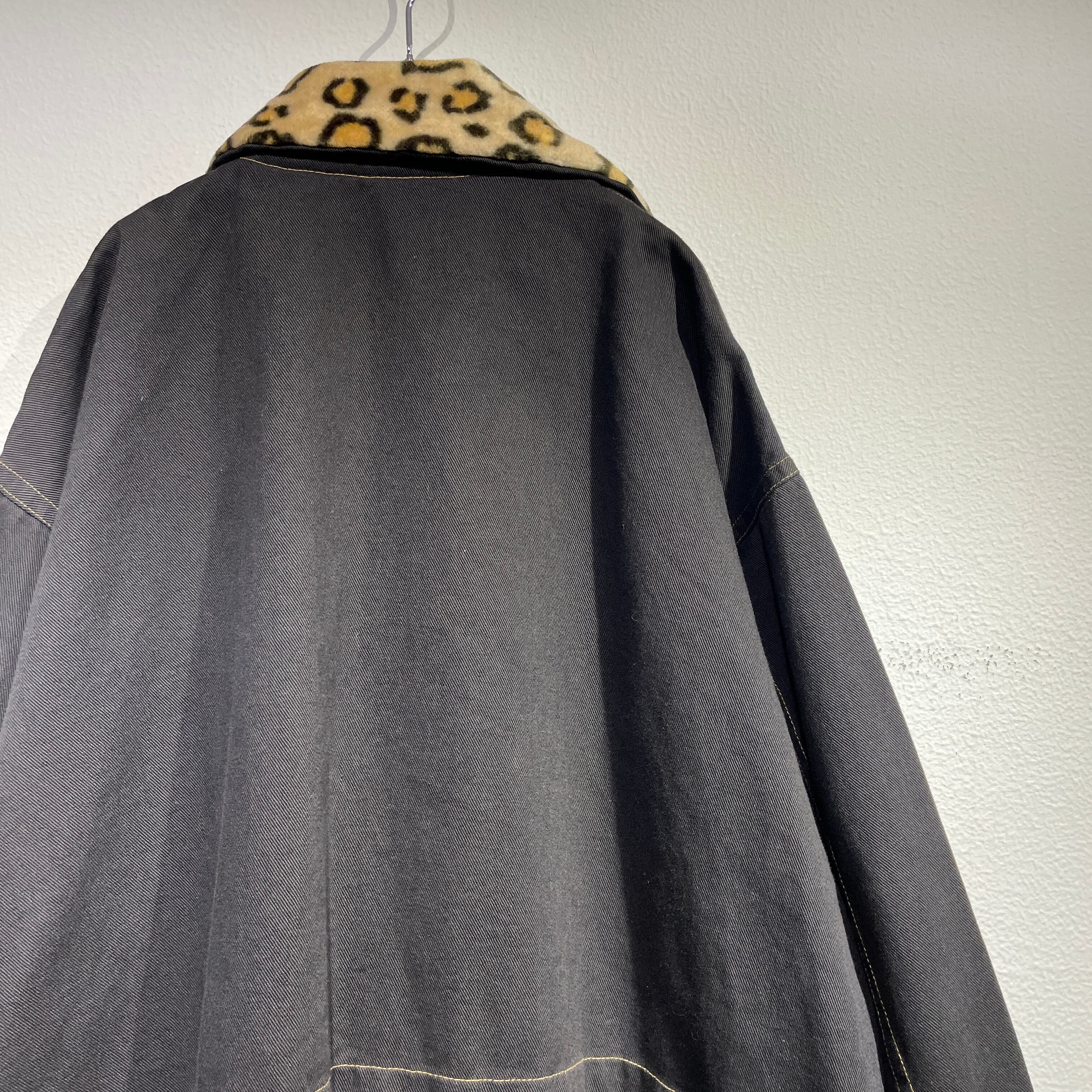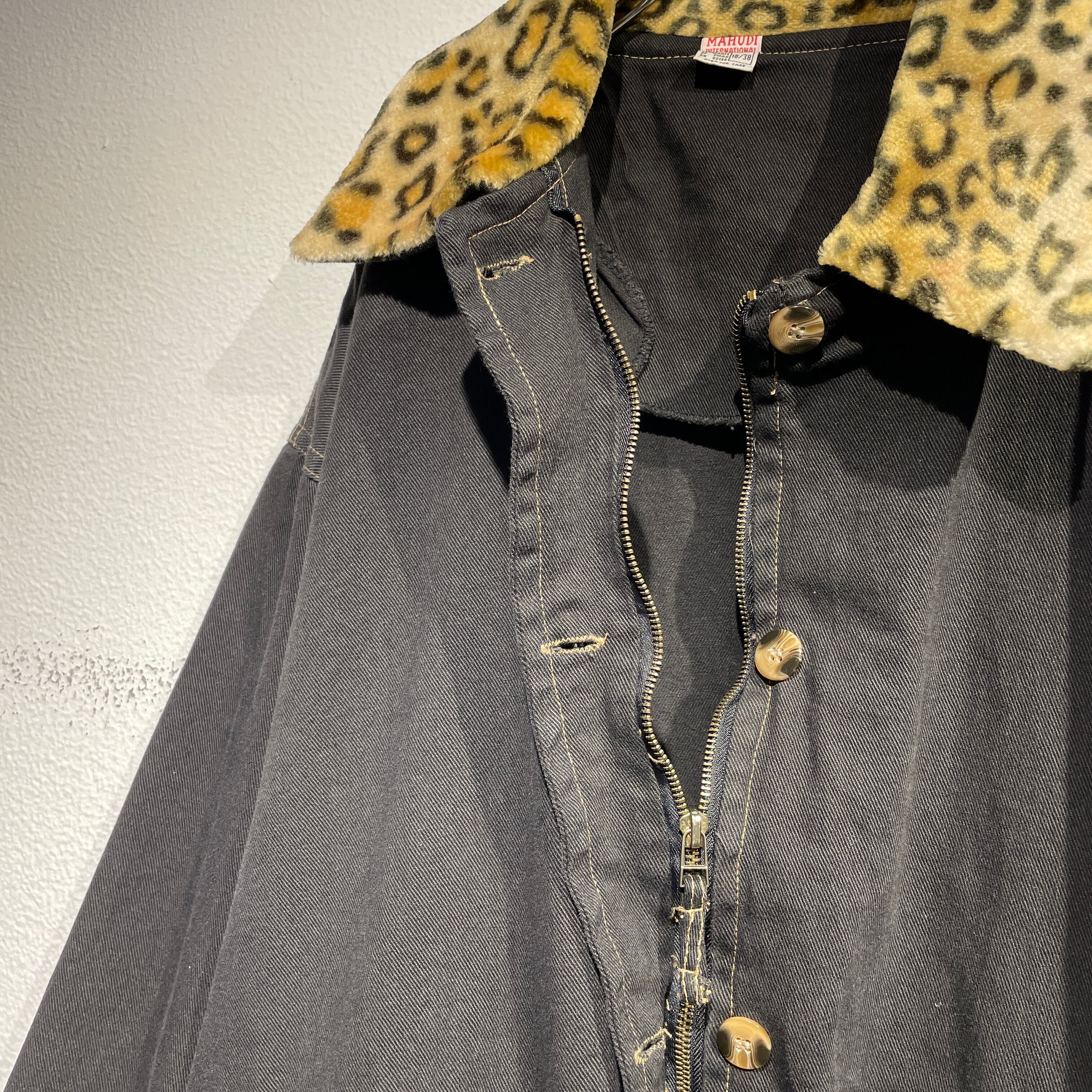 コットンカバーオールに襟はレオパード柄のかわいさ満点のジャケットです。