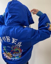 フライトジャケットの様なデザインとスカジャンがミックスした珍しいジャケットです。