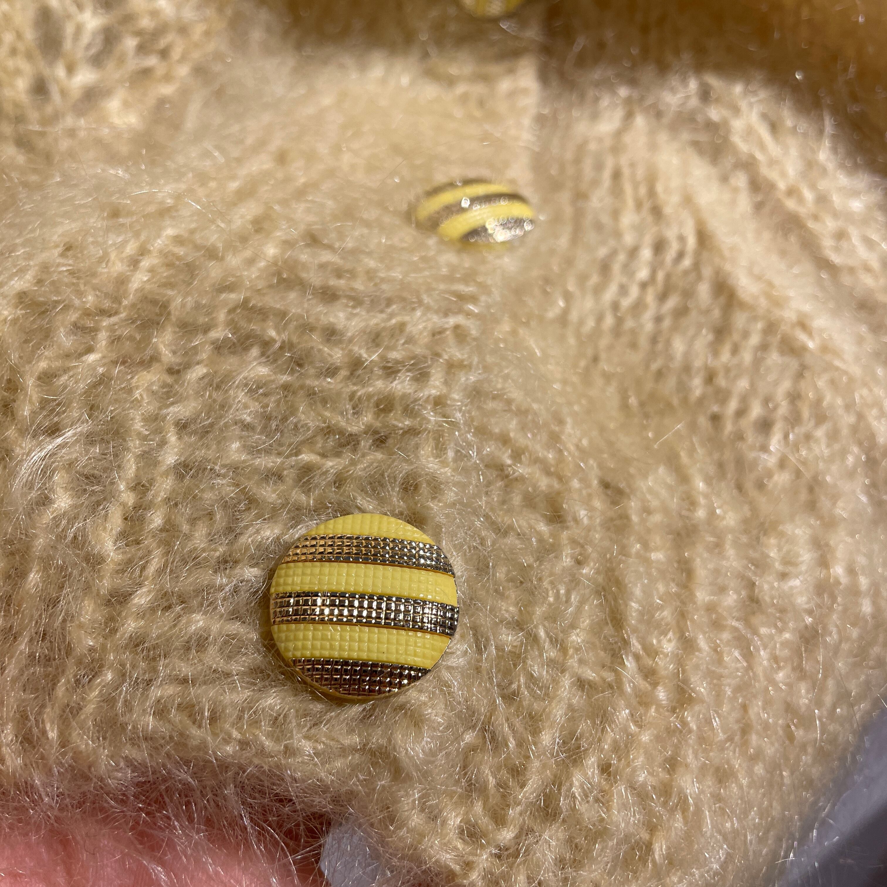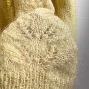 淡いイエローにフワッと長めのモヘアが可愛らしいニットカーディガンです。