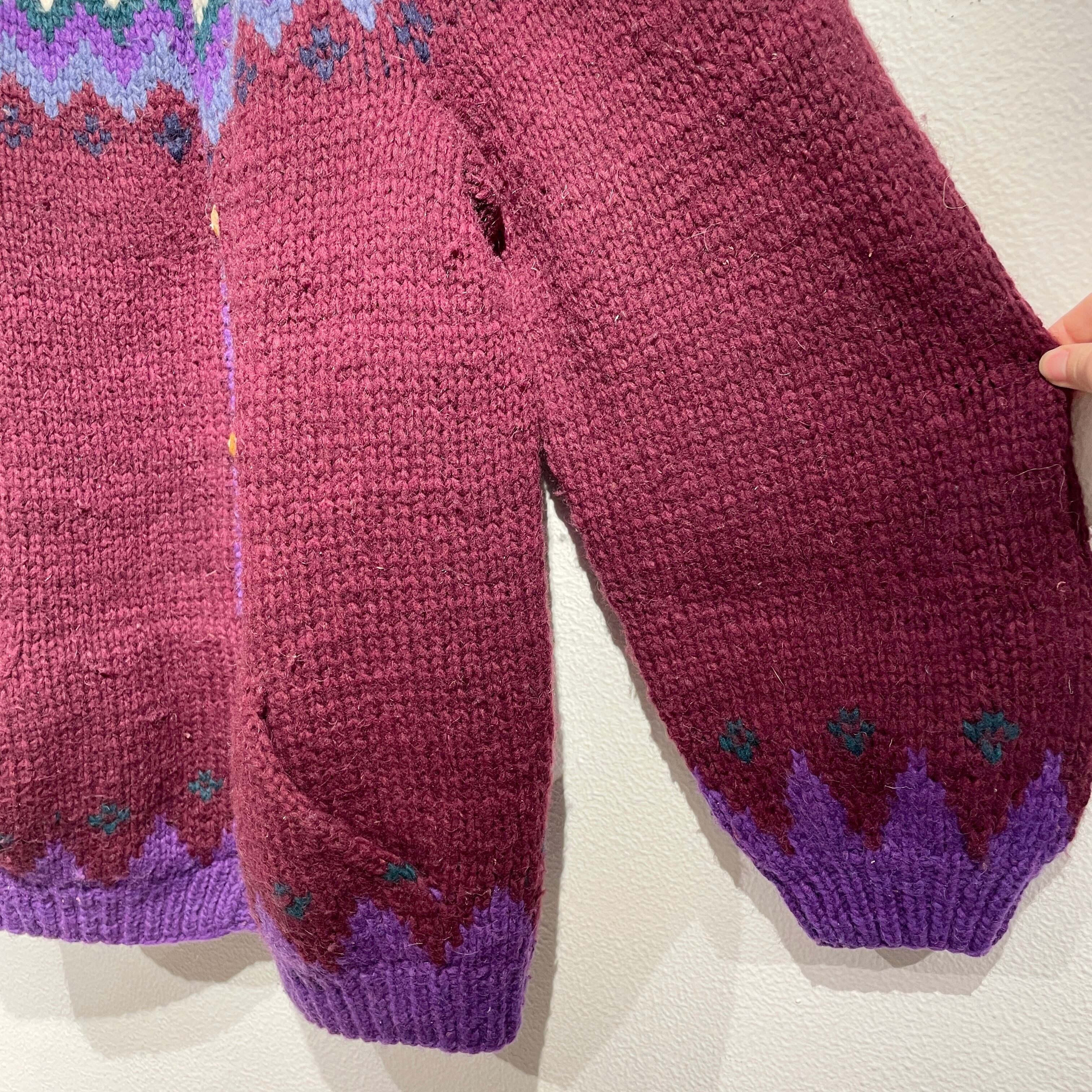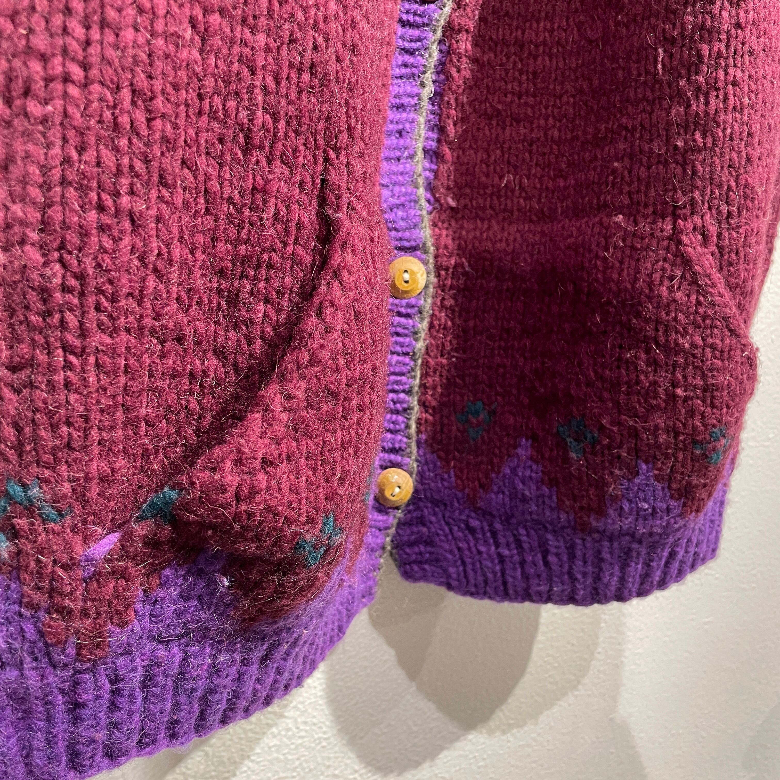 太めの毛糸でしっかりと編まれた肉厚カーディガン。