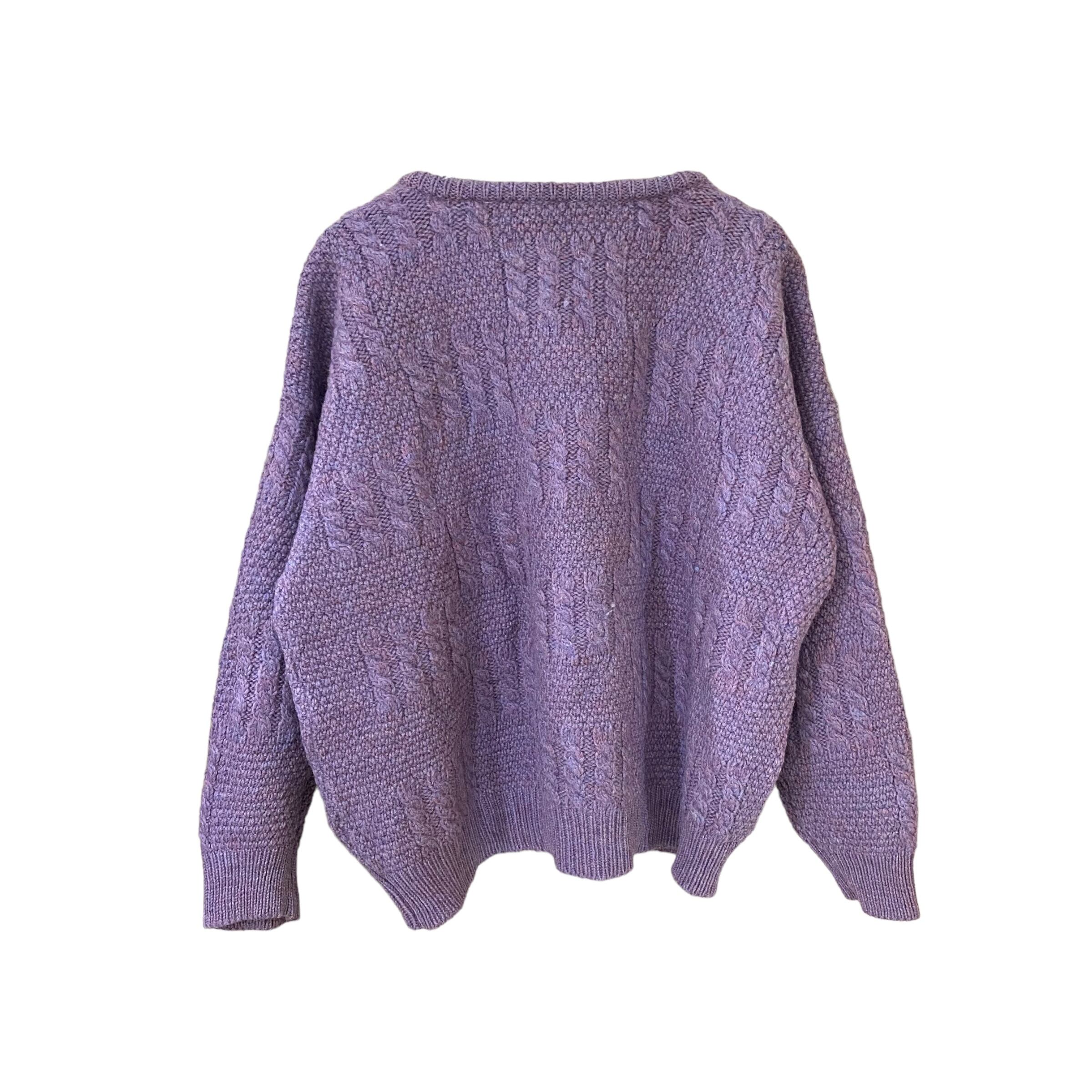 パープルのカラーに細かくレッドが混じった可愛らしいニット。
