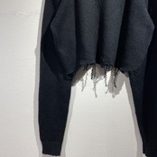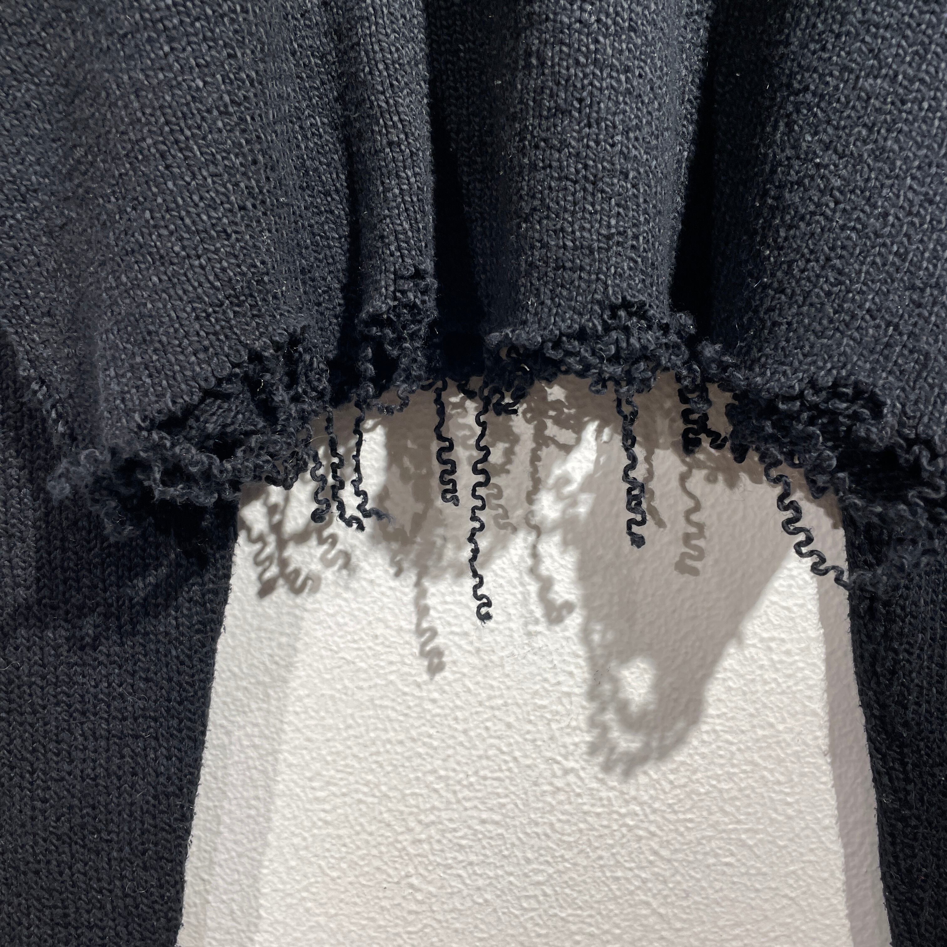 ※こちらはニットの切りっぱなしとなります。自然とほつれていく心配はございませんが、引っ掛けやお洗濯などの際はお気を付けくださいませ。