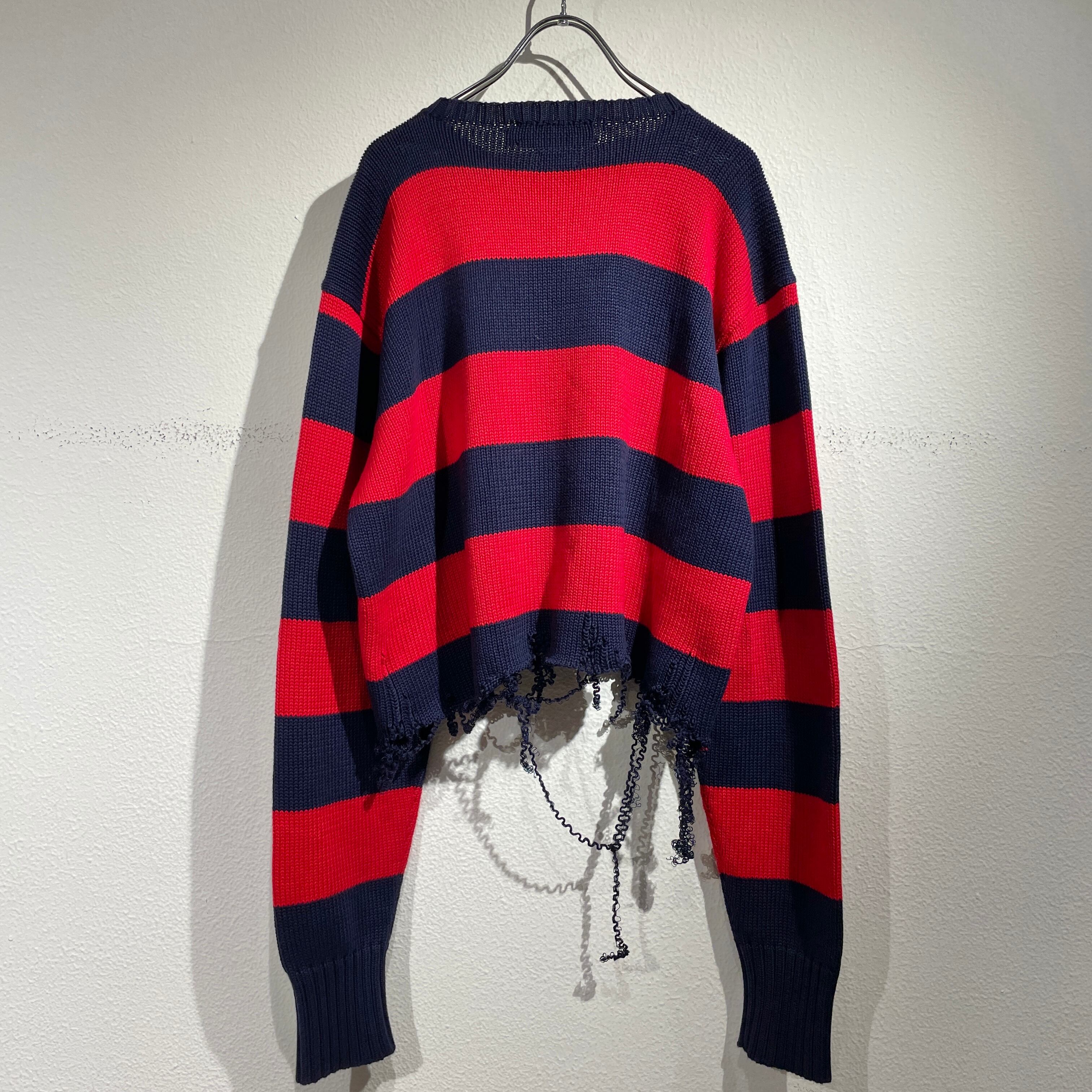 ※こちらはニットの切りっぱなしとなります。自然とほつれていく心配はございませんが、引っ掛けやお洗濯などの際はお気を付けくださいませ。