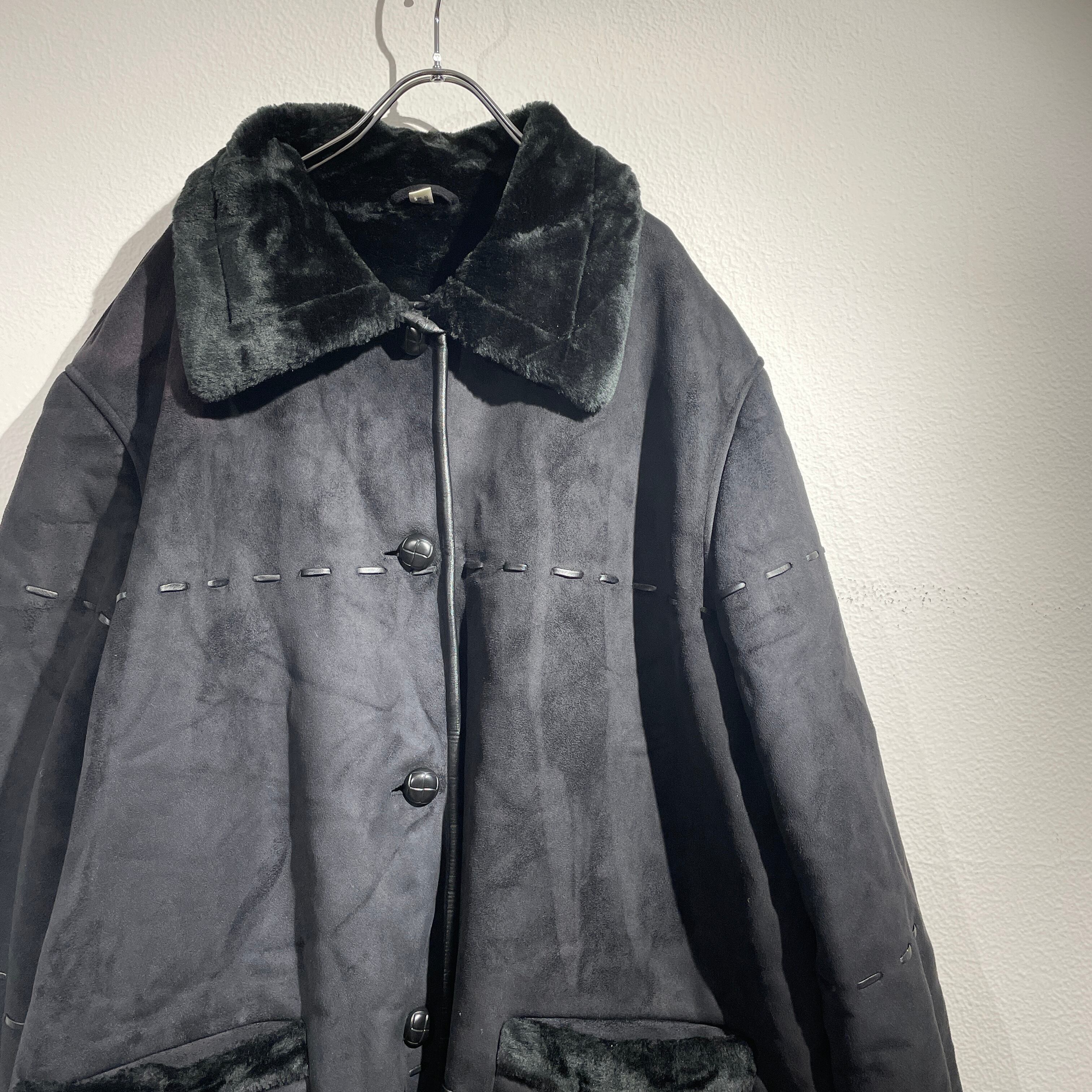 オールブラックがモードな雰囲気のあるフェイクムートンコートです。