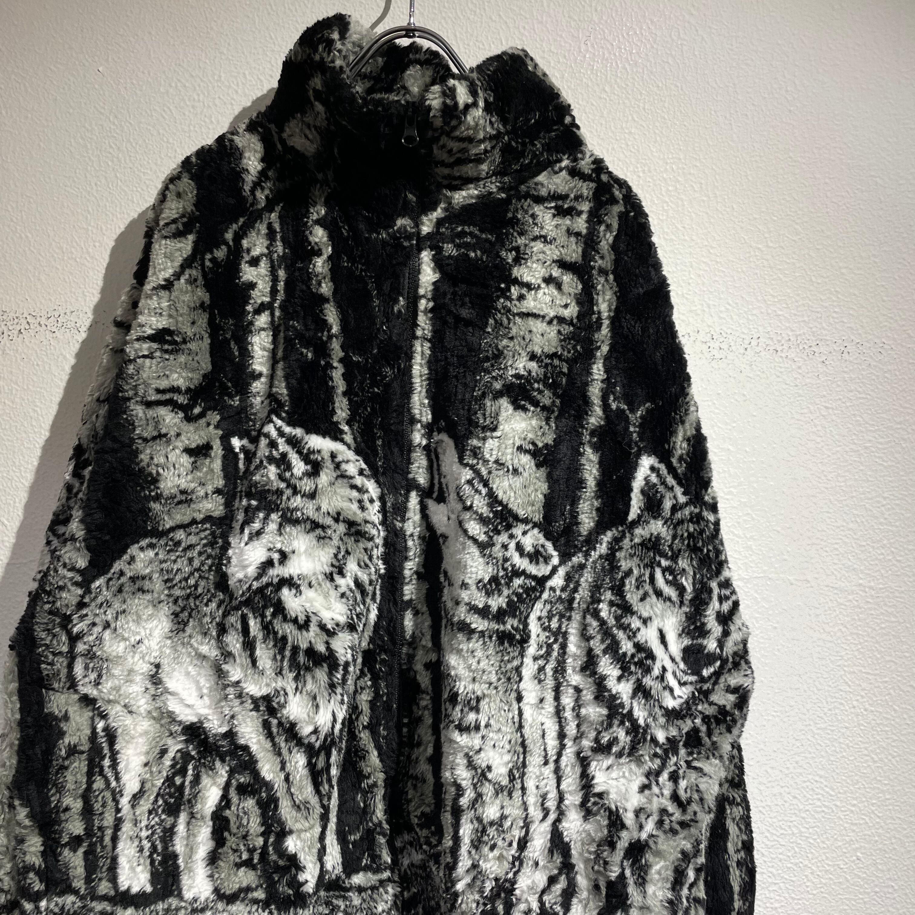 人気のオオカミ柄、そしてモノクロカラーで扱いやすい一着です。