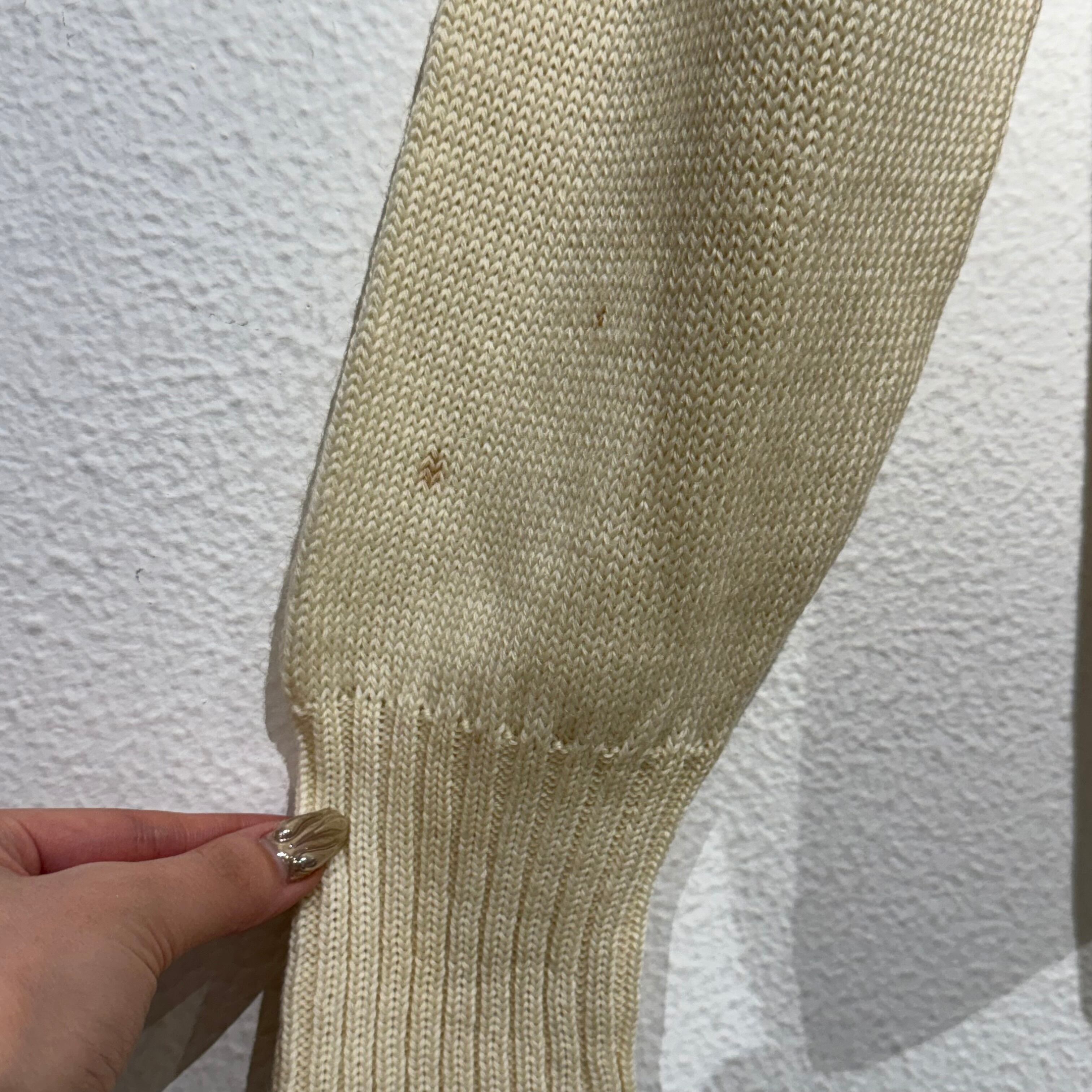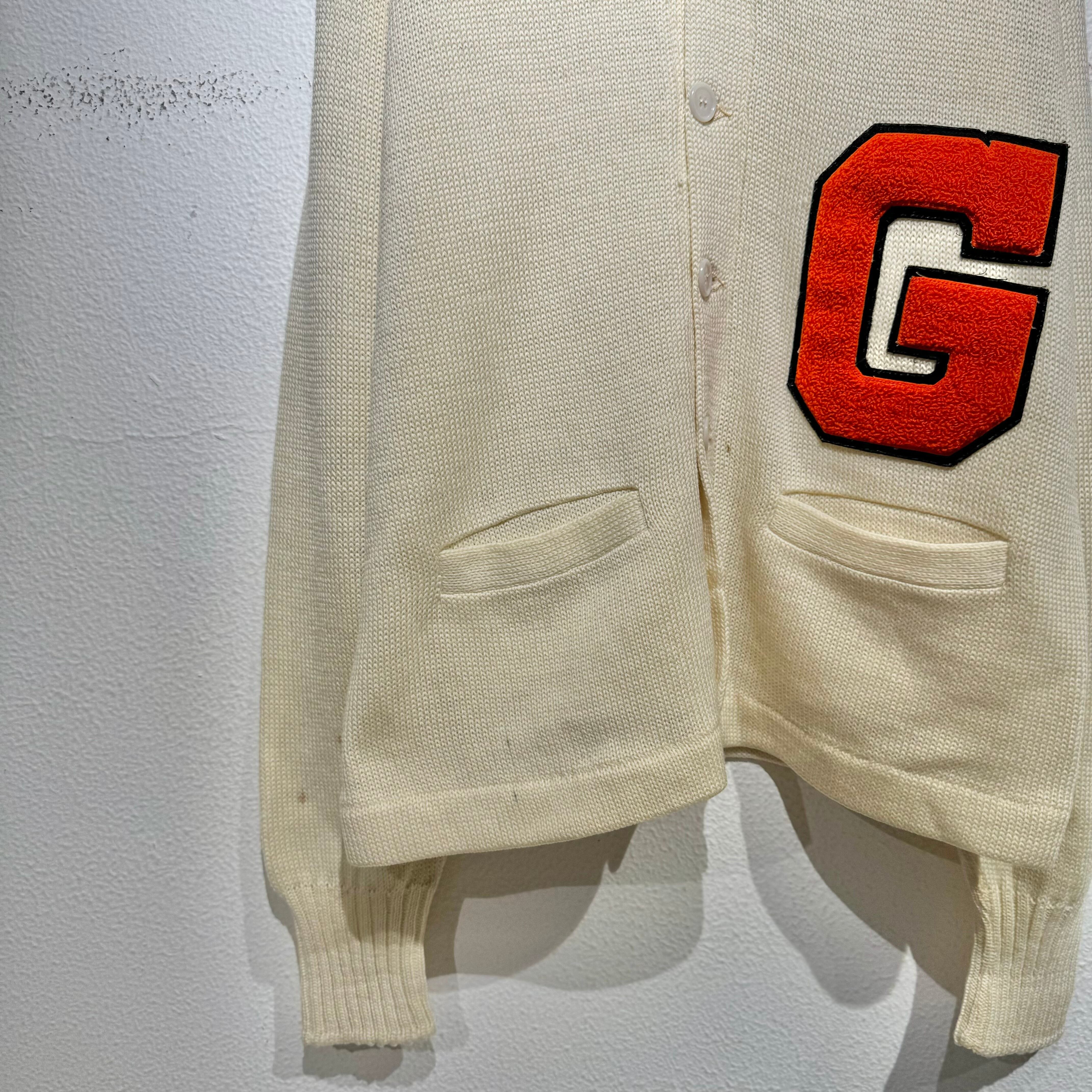 オフホワイトのボディにオレンジのワッペンが映えるカーディガン☺︎