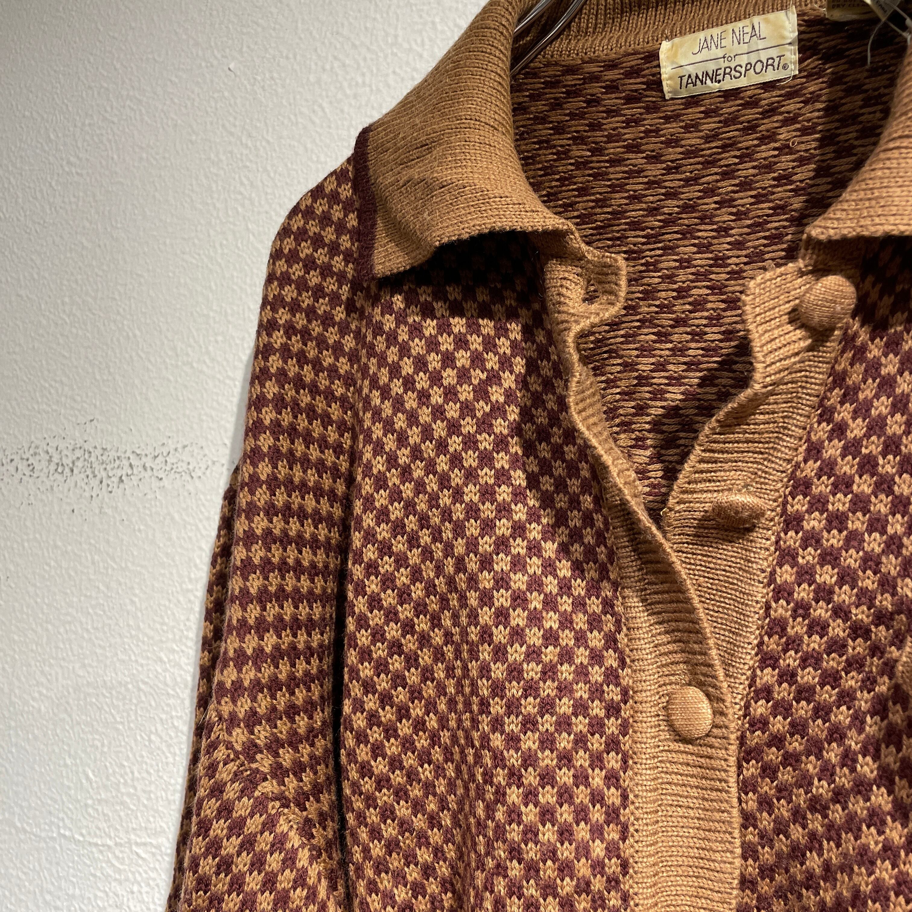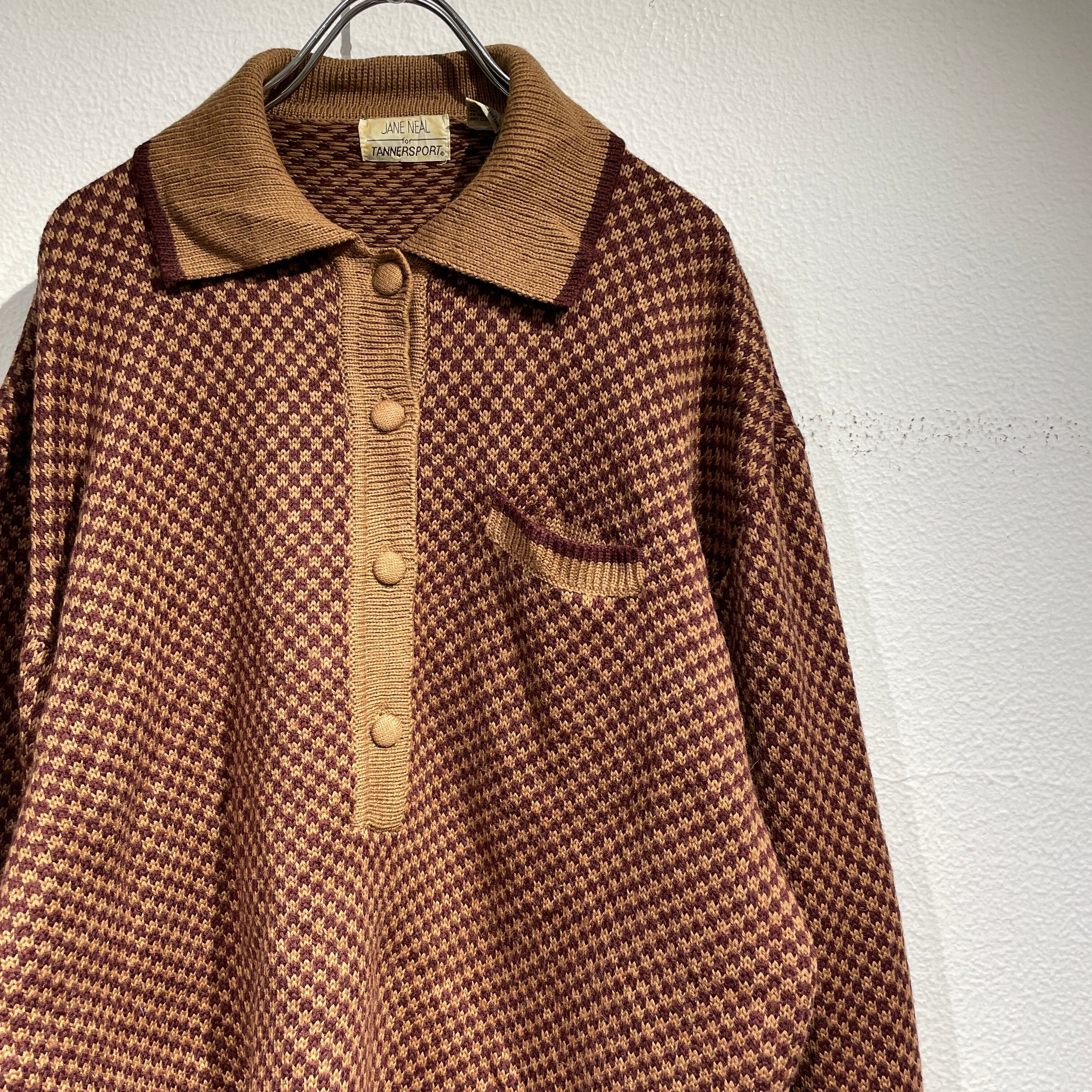 ブラウン×ベージュの色合いとハーフボタンがなんとも古着らしい一枚。