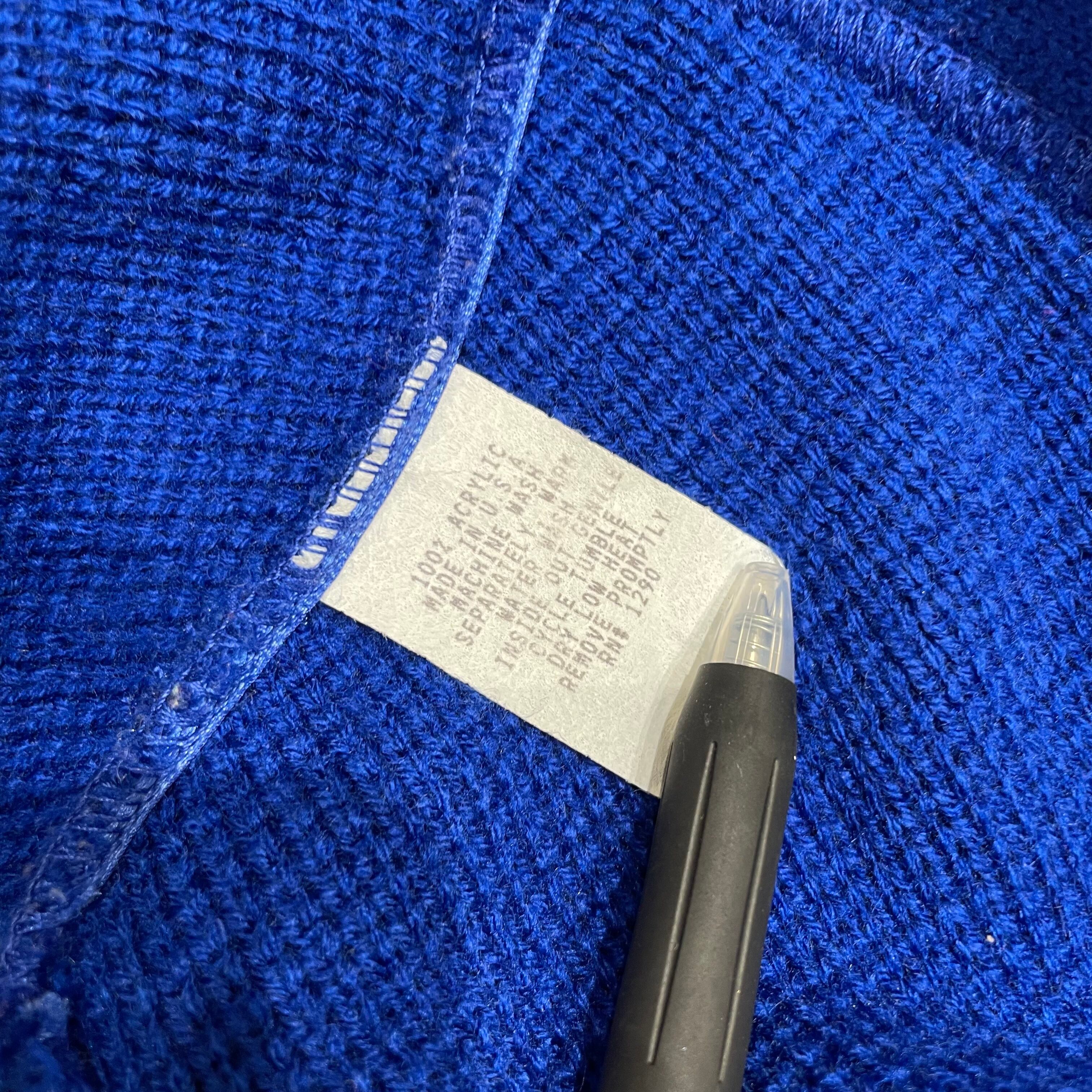 パキッとしたブルーが綺麗なレタードカーディガン。