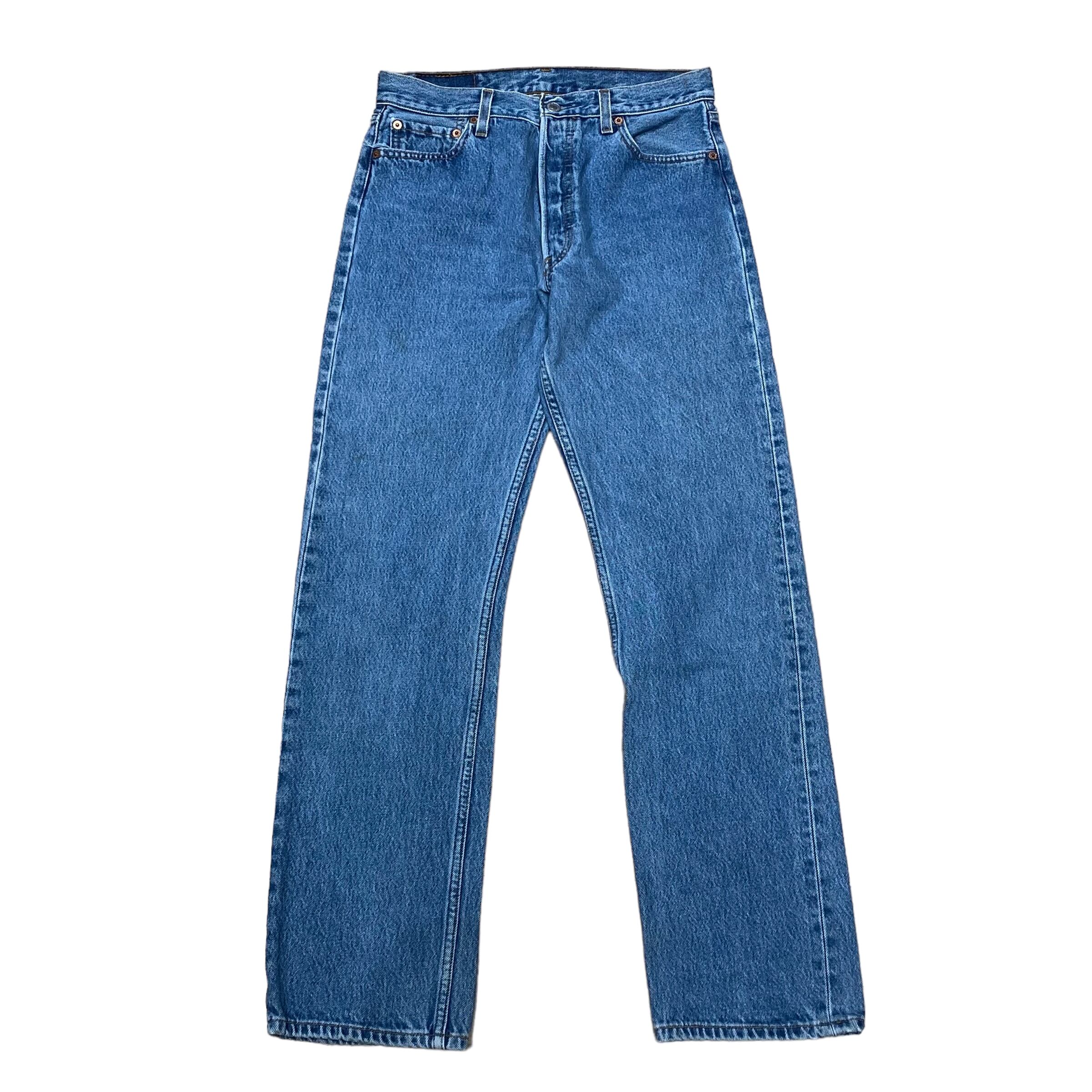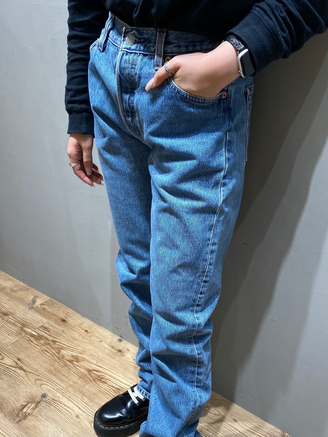 裾に少しテーパードがかかっている、綺麗なシルエットのストレートデニムです。