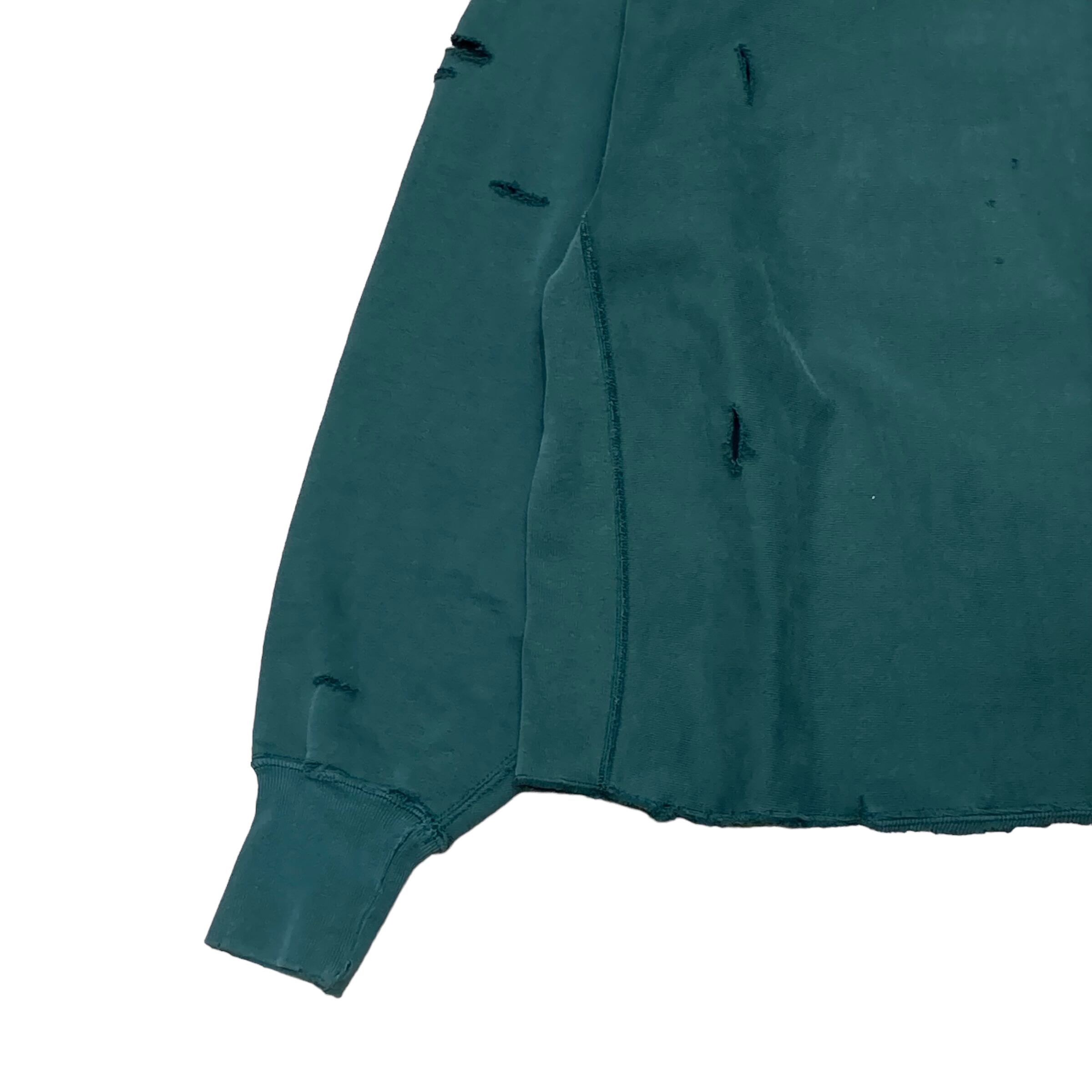 近年人気の高いリバースウィーブに大胆なダメージ加工を施した一着。