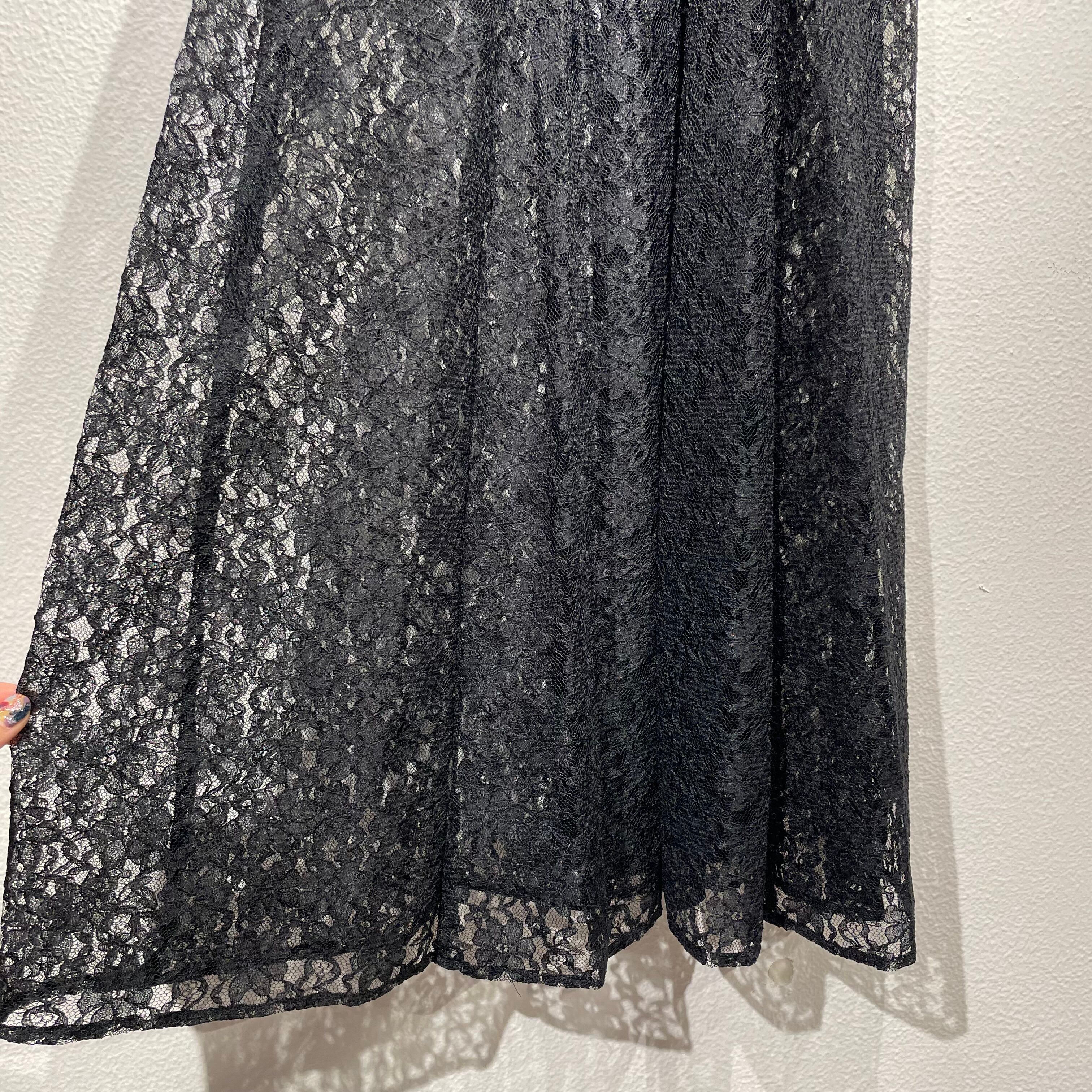 ブラックカラーの総レースワンピ。