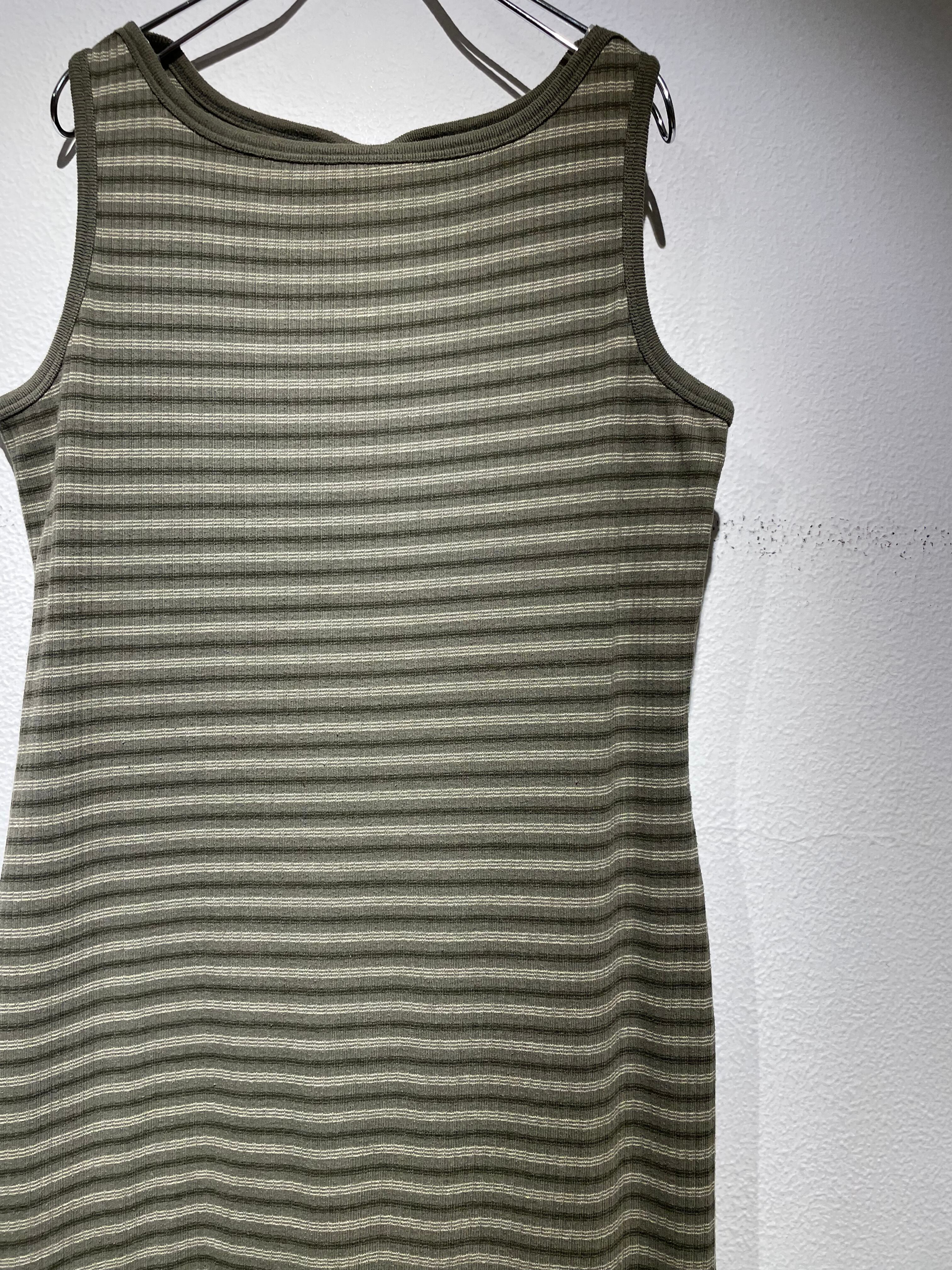 落ち着いたカーキのボーダーがオトナな雰囲気のワンピース。