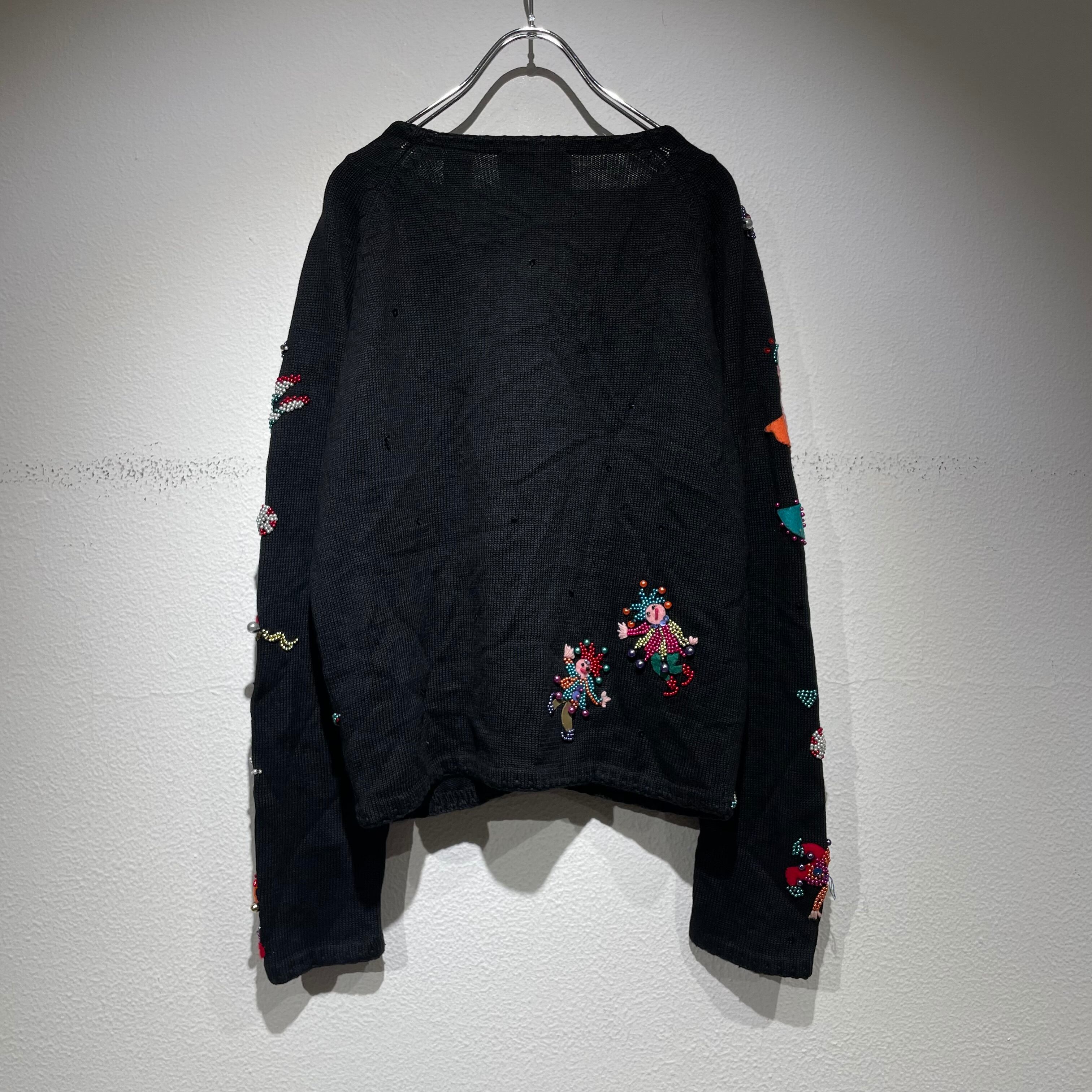 ビーズやフェルト刺繍などのカラフルなデザインが目を引くカーディガン。