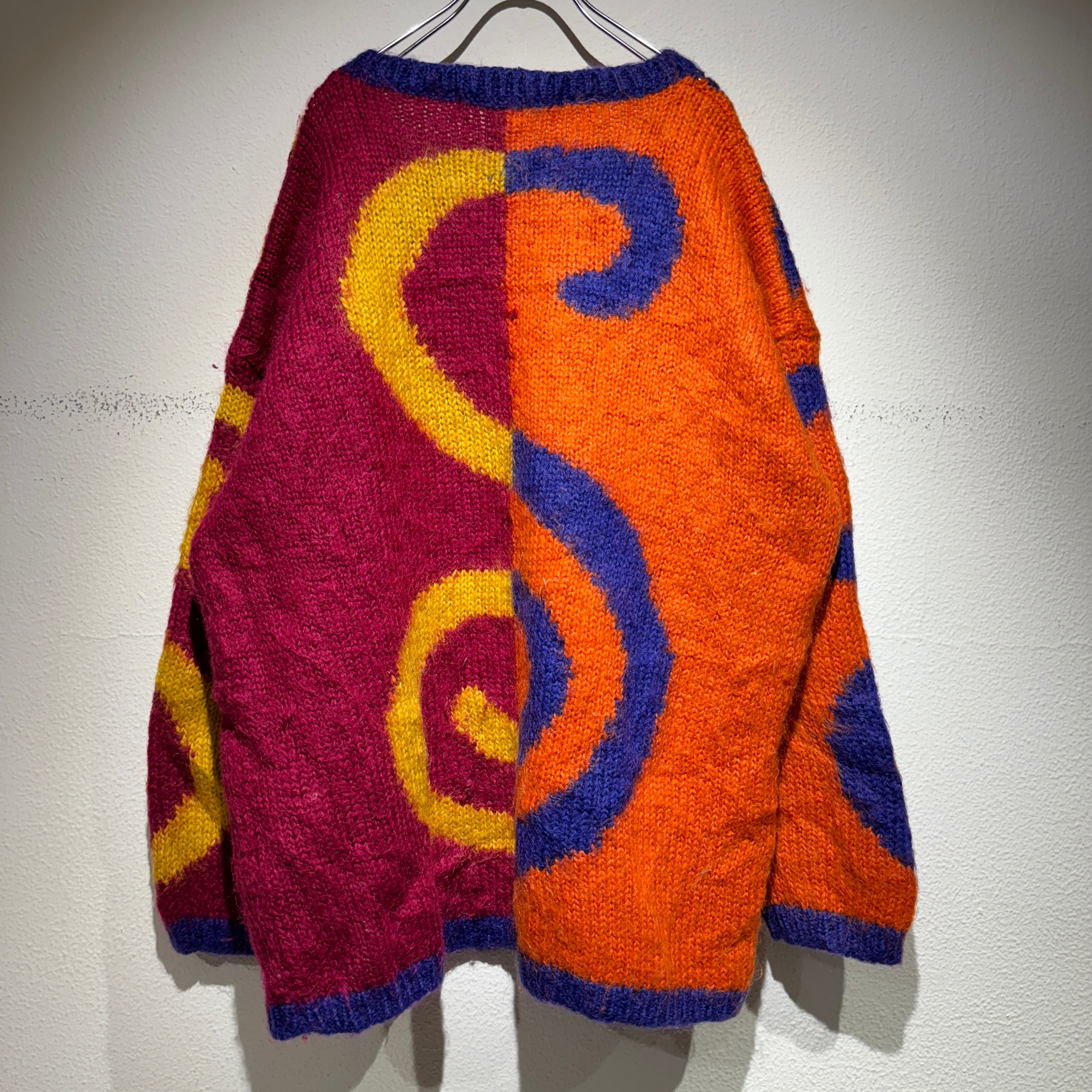 バイカラーのぐるぐるデザインが可愛らしいモヘアニット。