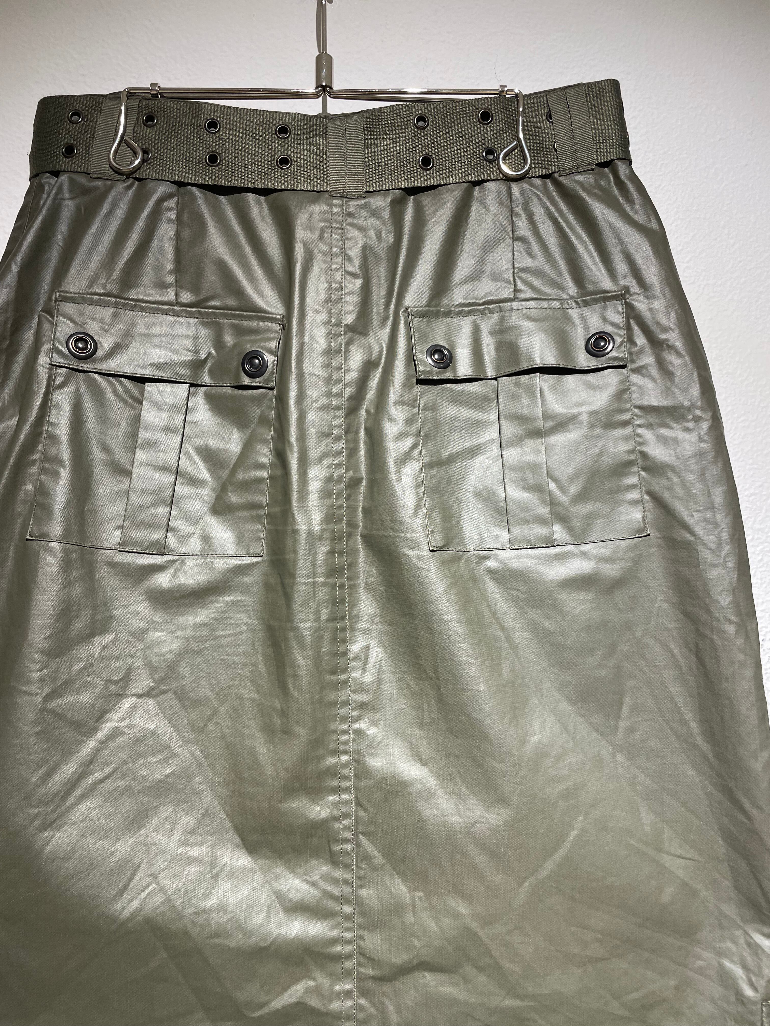ベルトやアジャスターのデザインが可愛らしいフェイクレザースカート。