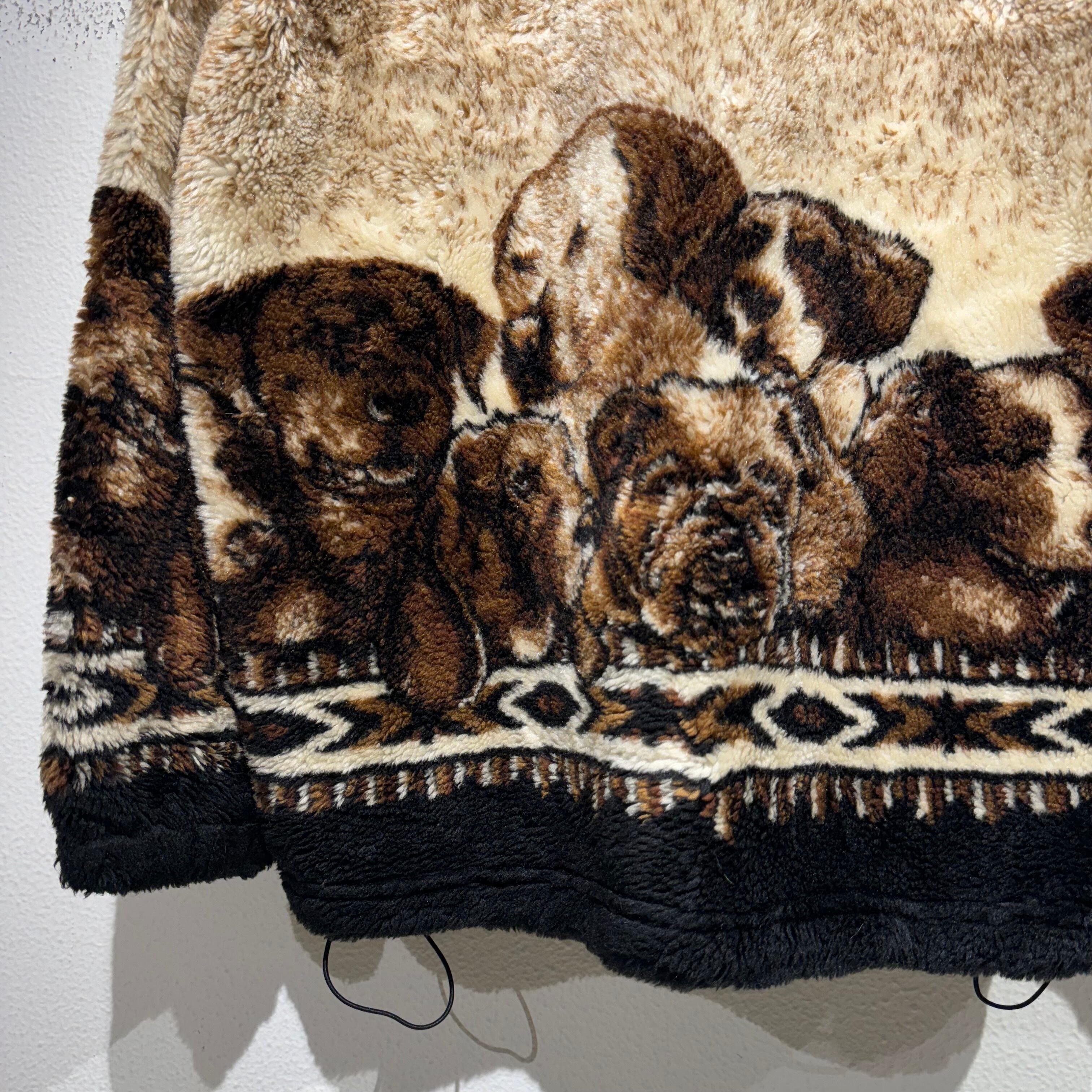 裾全面に描かれたワンちゃんが可愛らしいフリースジャケット。