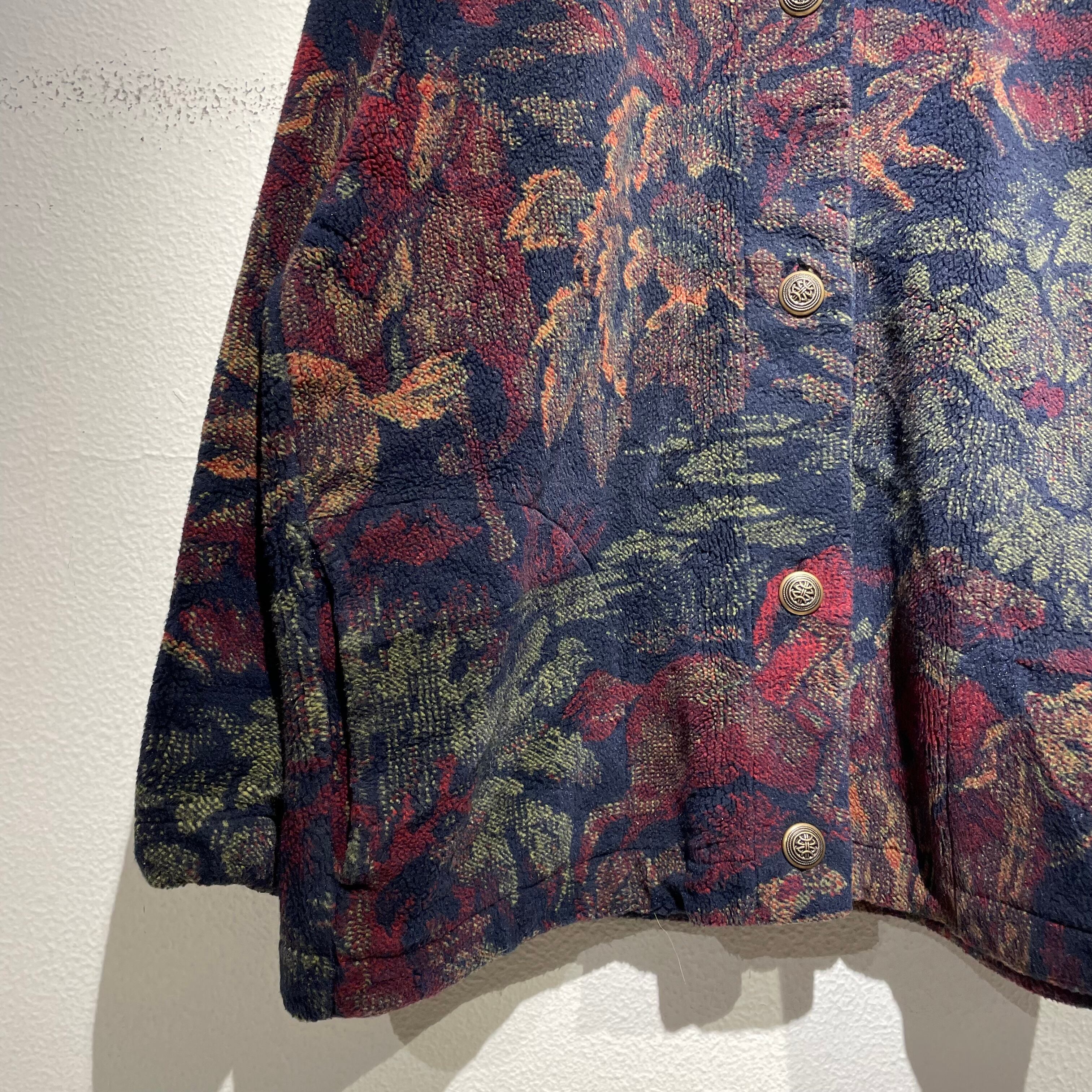 全面に馬や花柄が描かれているフリースジャケットです。