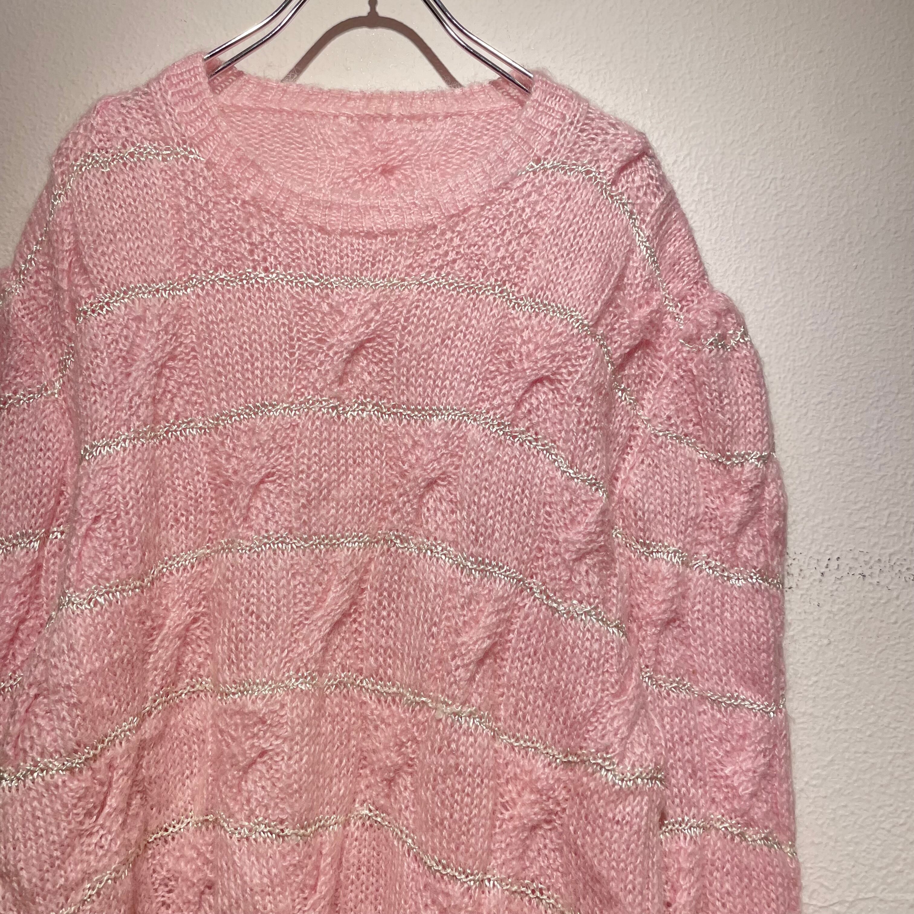 アーガイルのような織り方が可愛らしいモヘアニット。