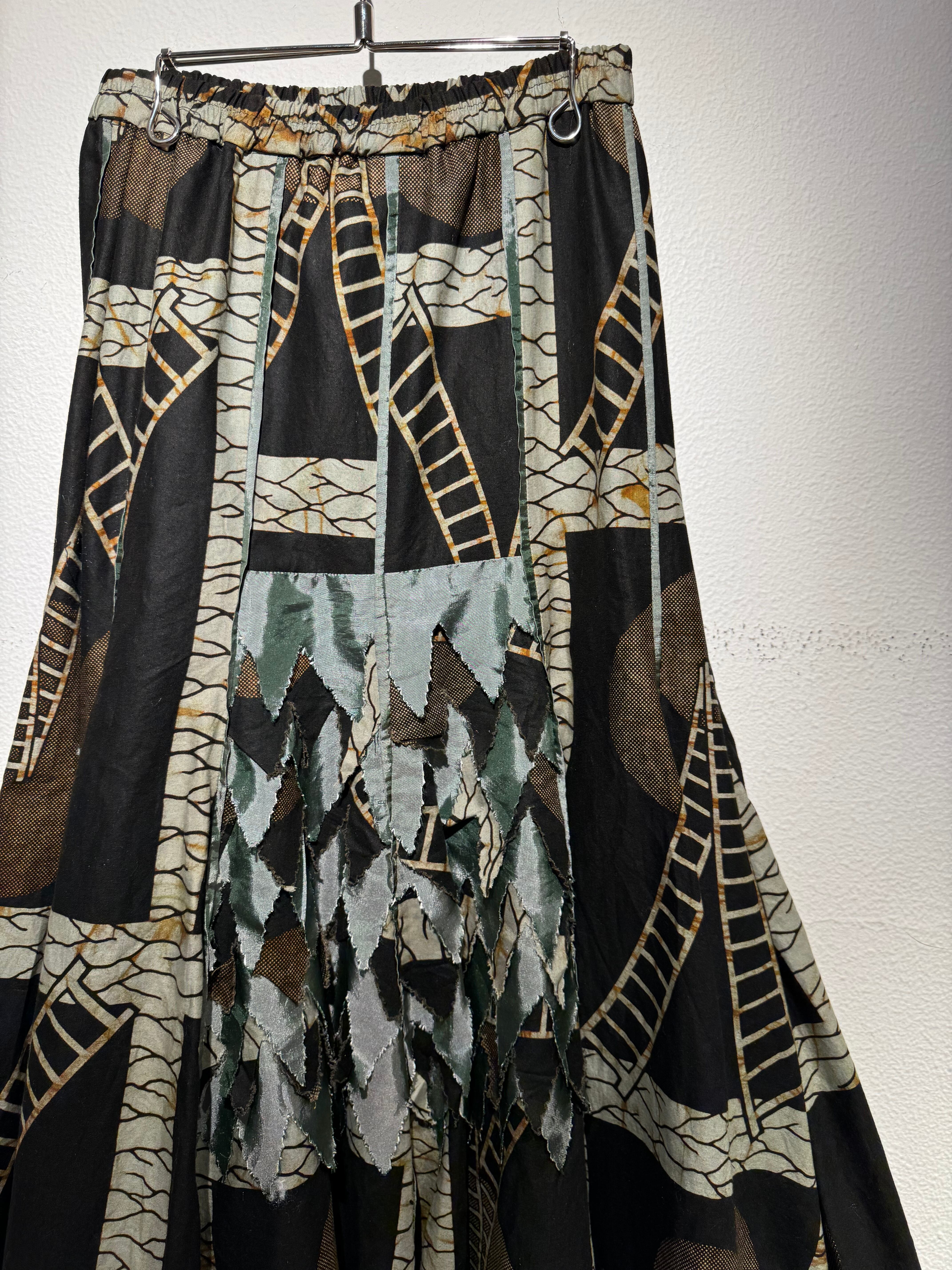 コットン生地とナイロン生地の切り替えデザインが個性的なスカートです。