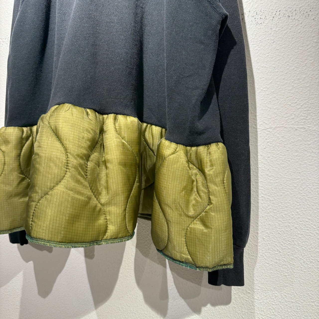 無地スウェットの裾にミリタリーライナーをぐるりと取り付けたリメイクスウェット。