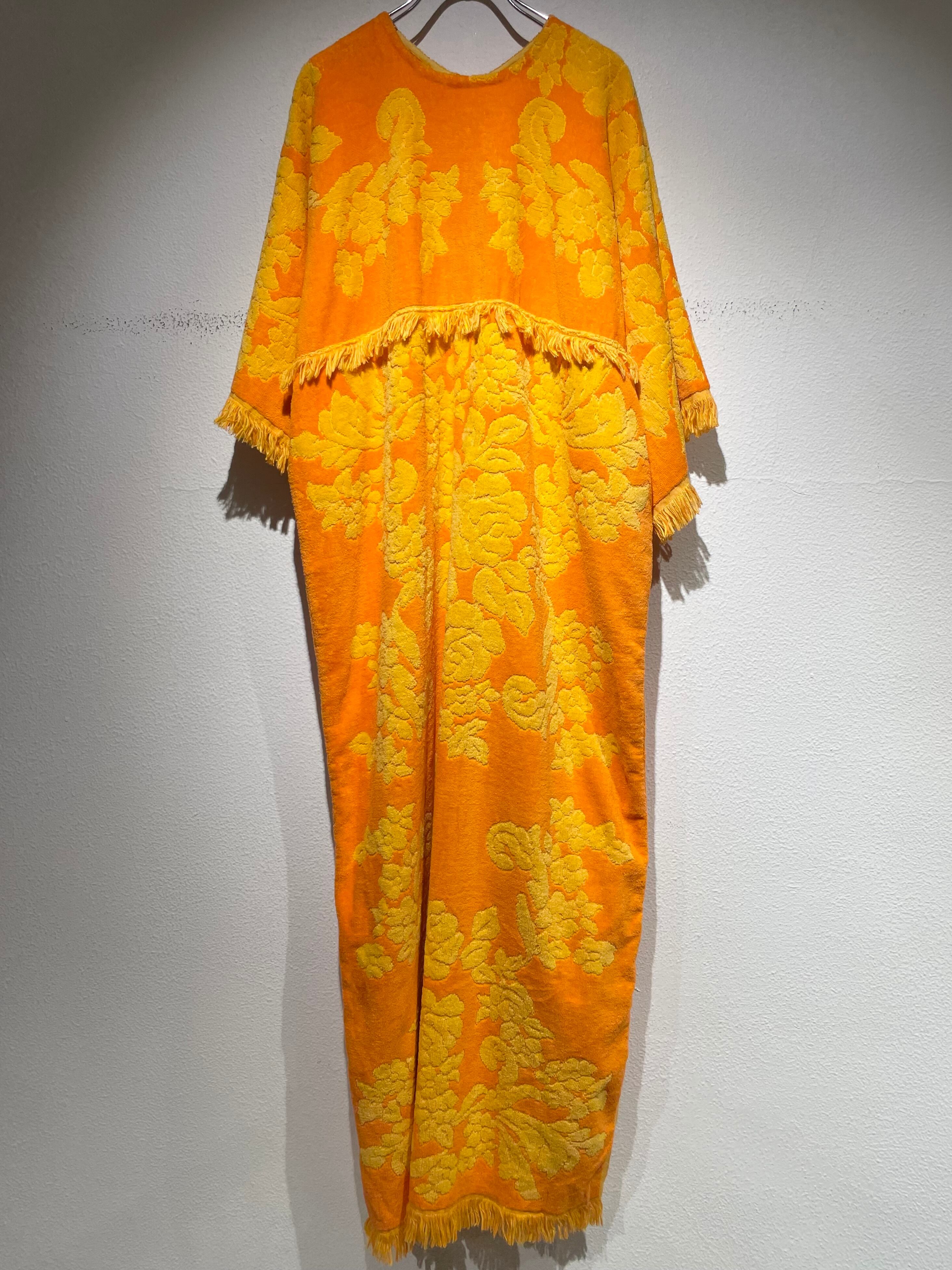 オレンジ×イエローのカラーリングが可愛らしいパイル地のデザインワンピース。