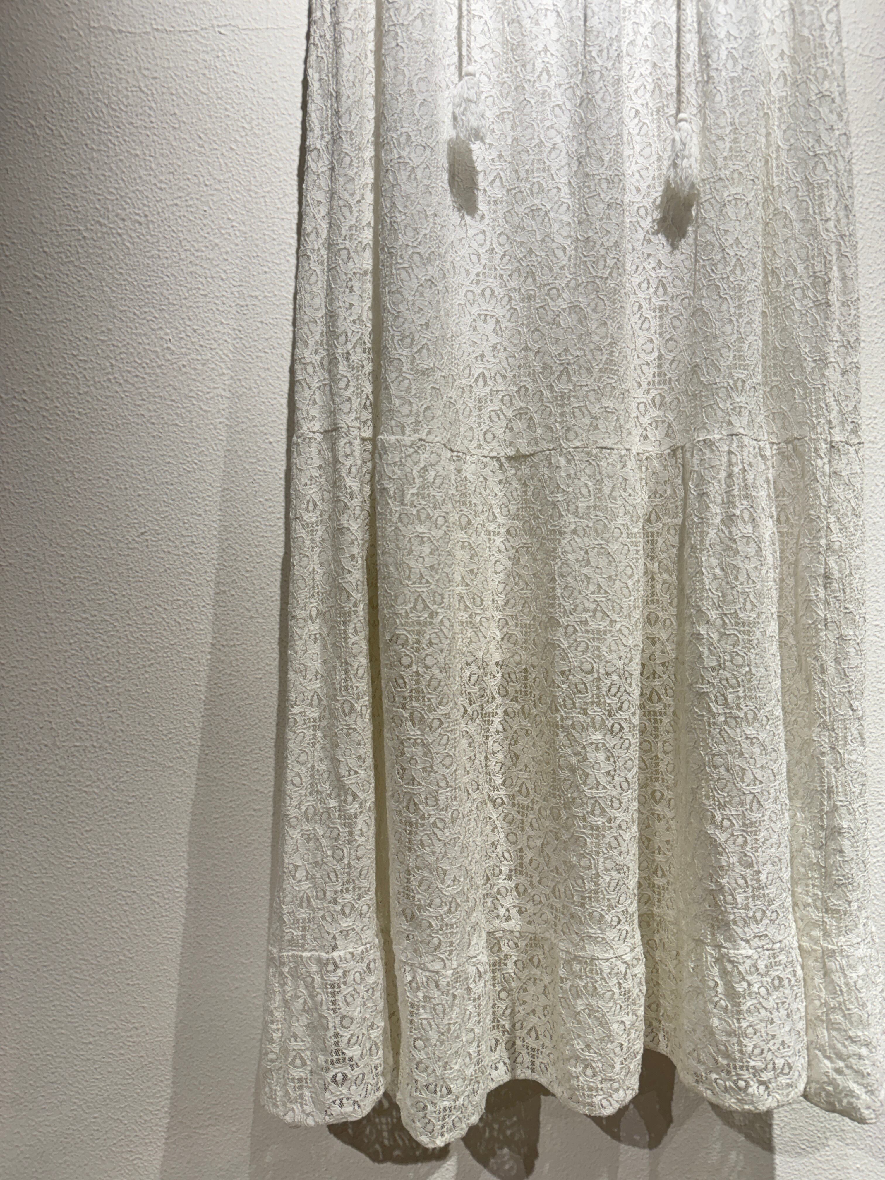 白の総レースが可愛らしいノースリーブワンピース。