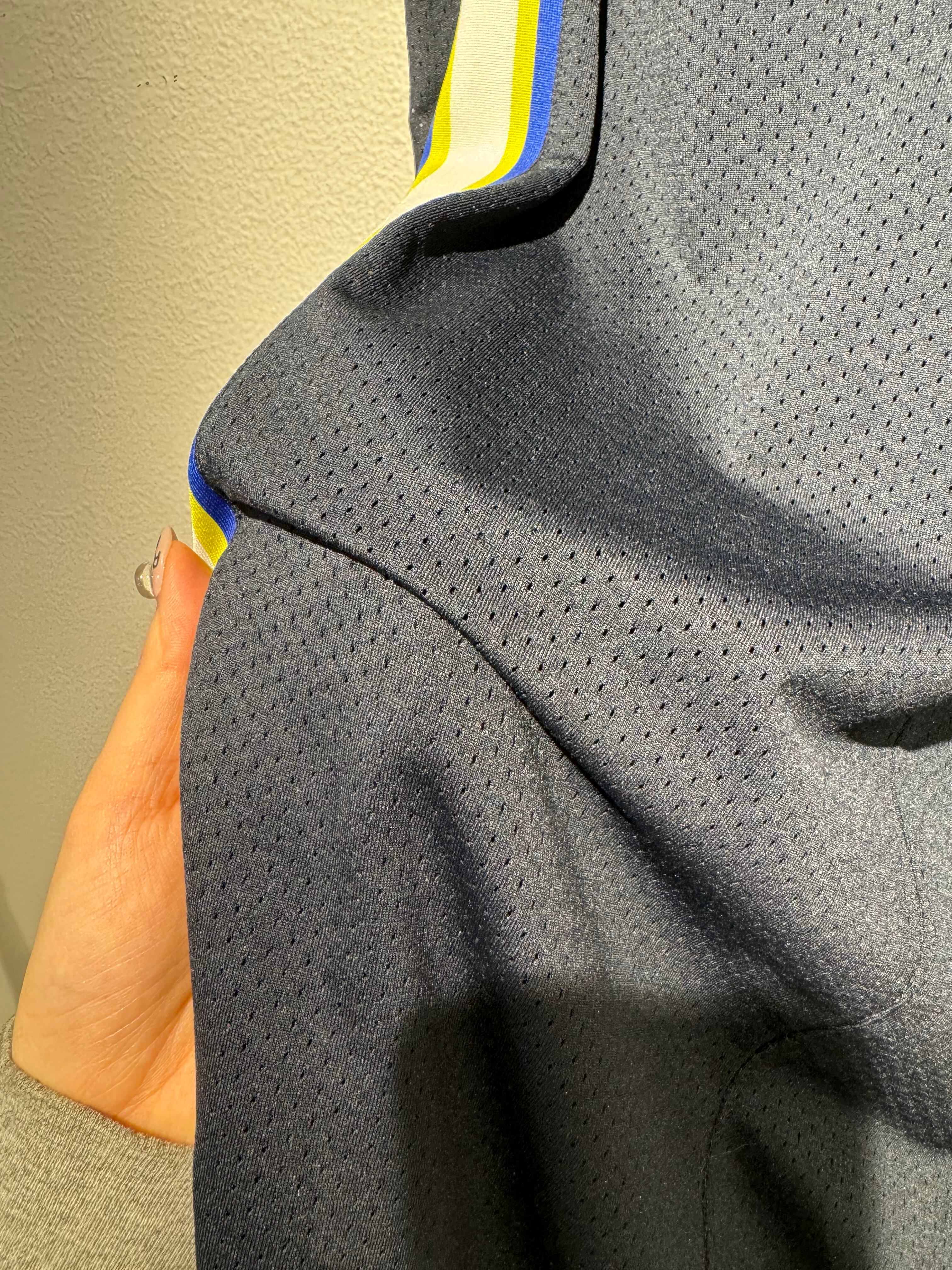 シンプルなブラックにイエロー×ブルーラインが映える1着✶