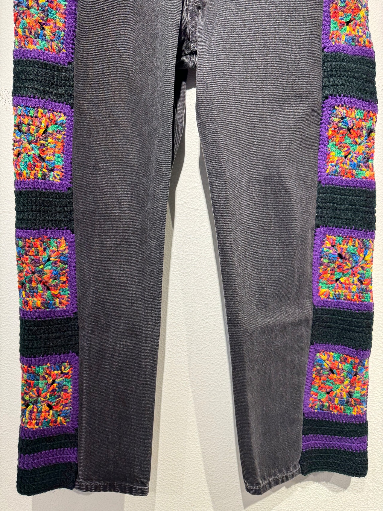 リーバイス505を分解し、サイドにusedのクロッシェニットを付け加え再構築したオリジナルの一本◎