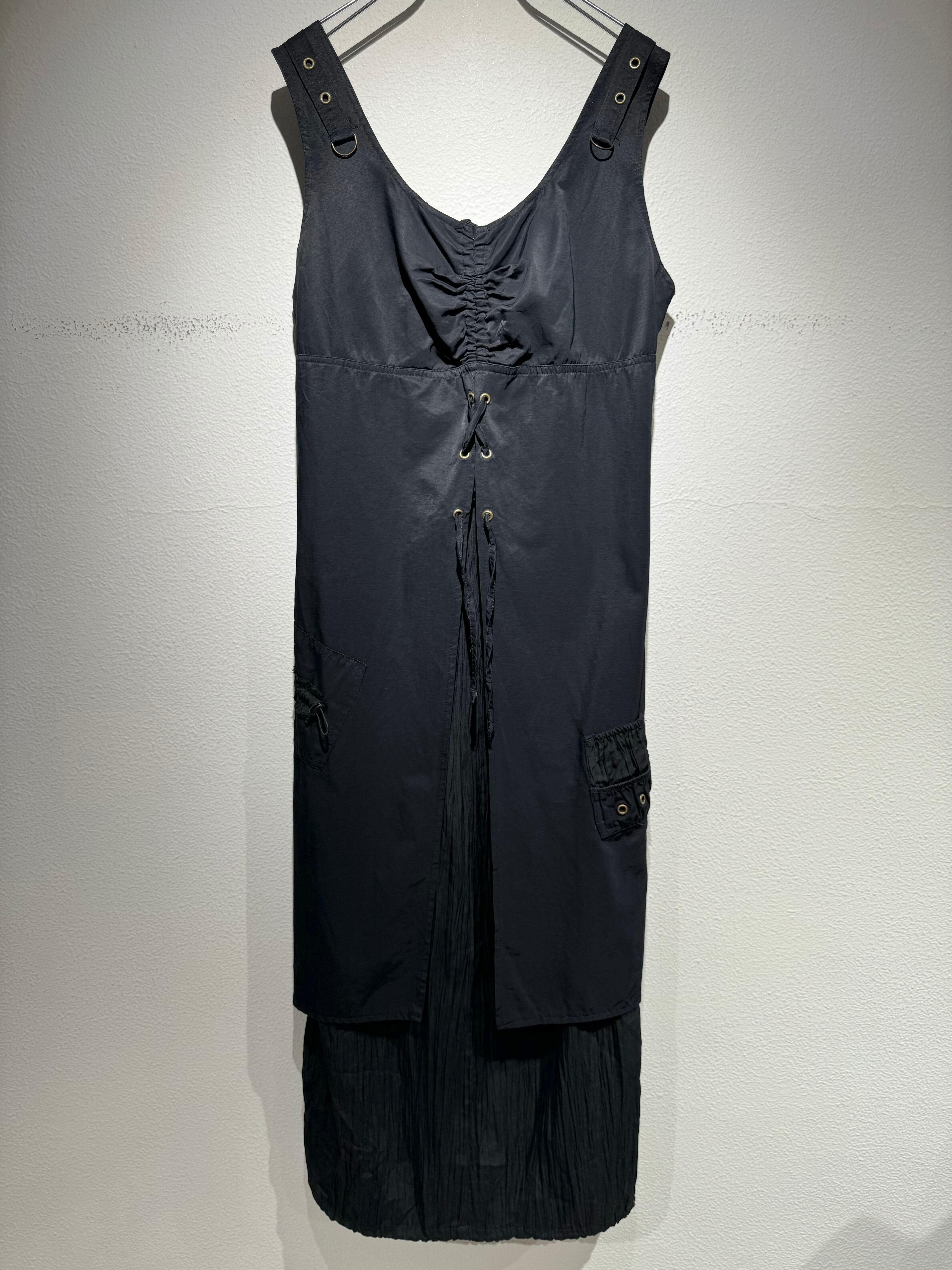 レイヤード風なデザインが一癖あるノースリーブワンピースです。