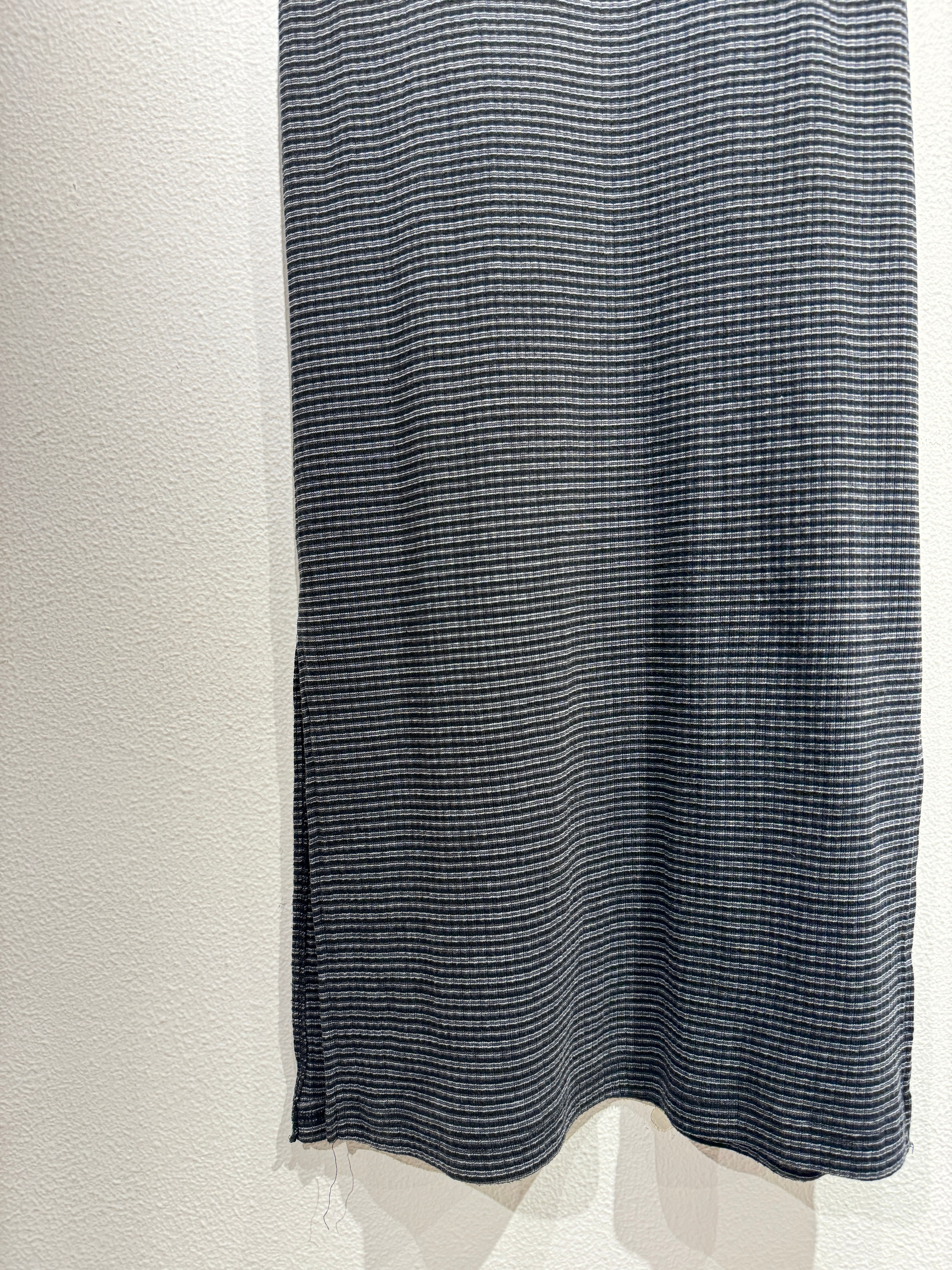 ダークトーンのボーダー柄でコーディネートに取り入れやすい1着です。