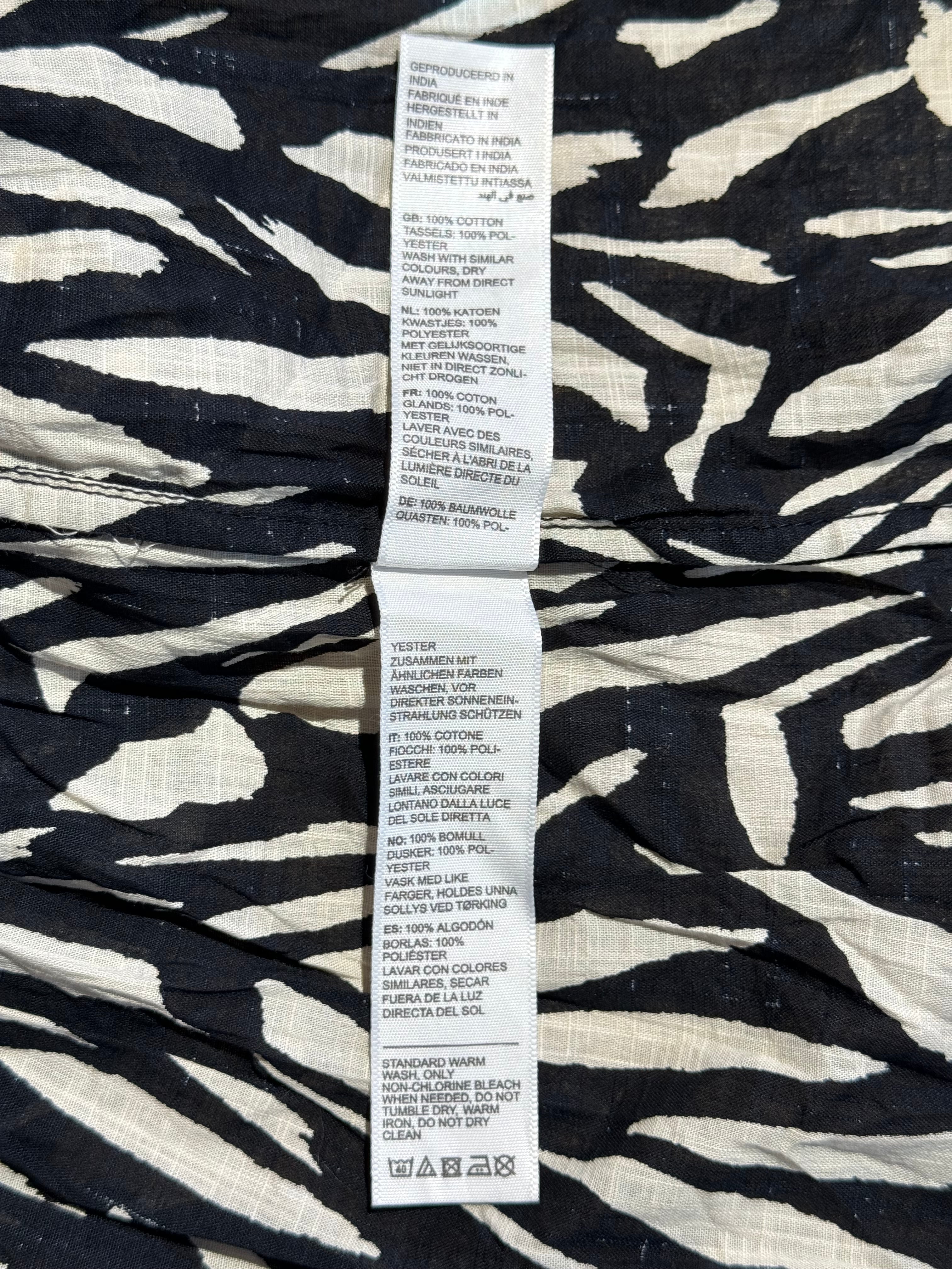 ゼブラ柄のような総柄が印象的なノースリーブワンピース。