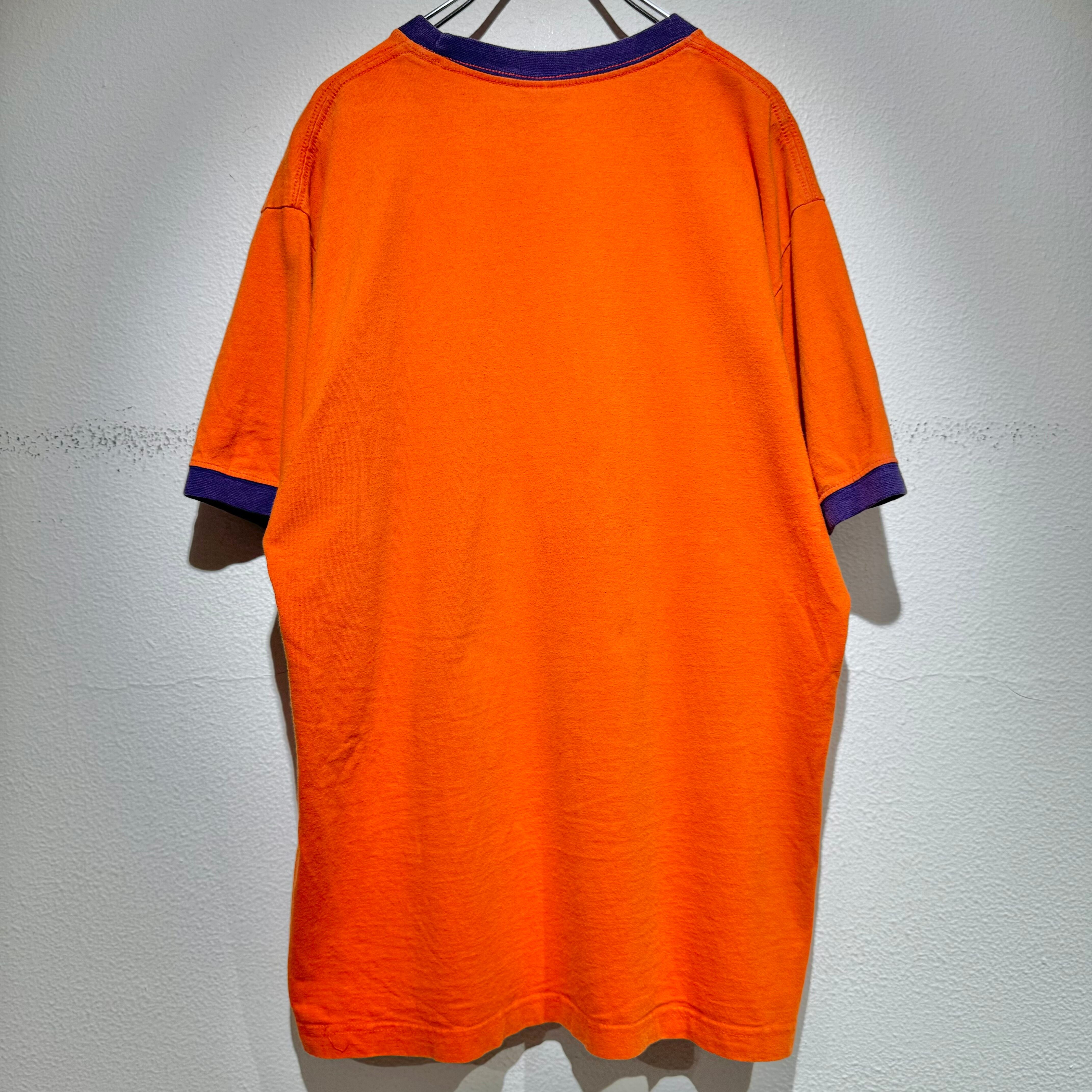 オレンジ×紫の配色が可愛らしいナイキのリンガーTシャツ。