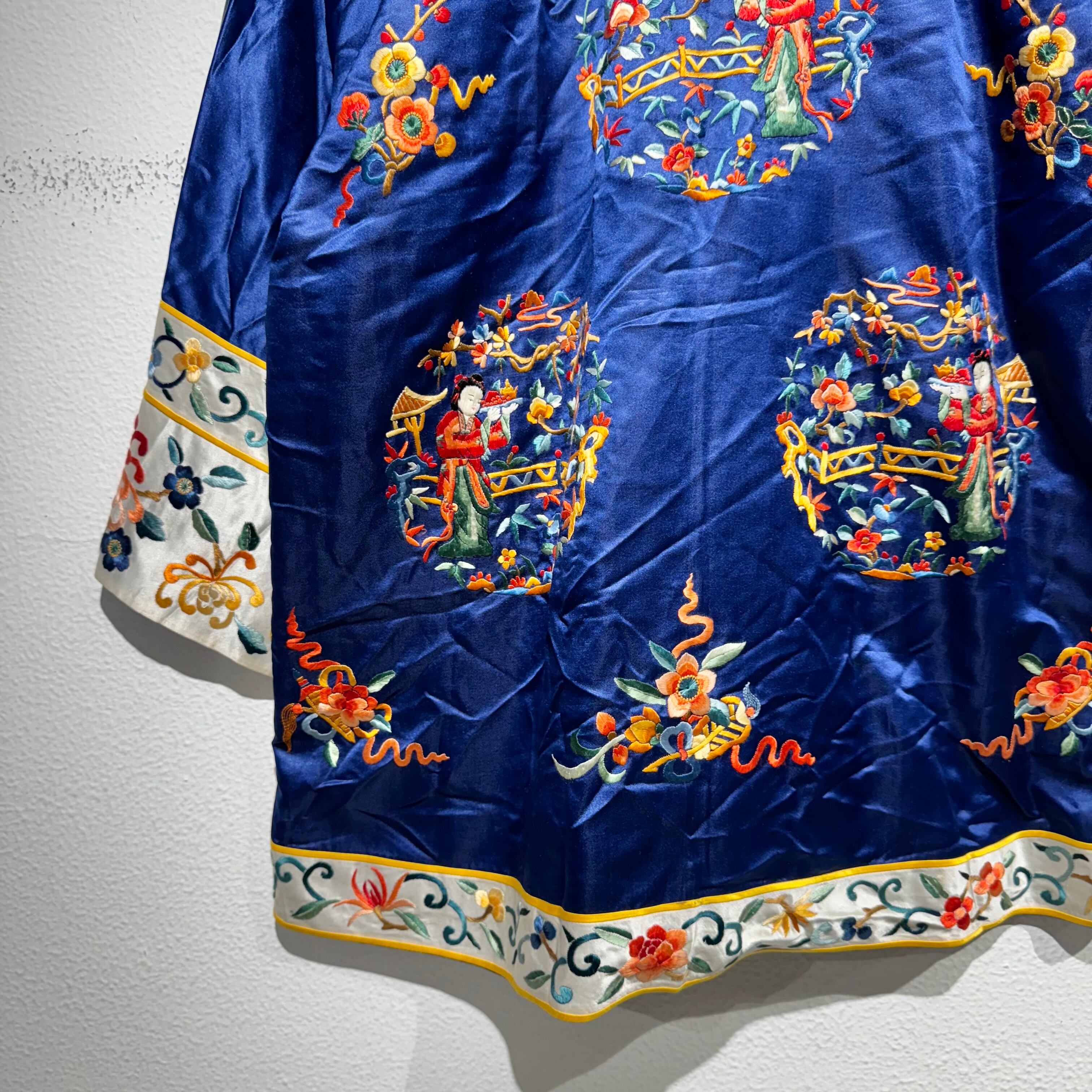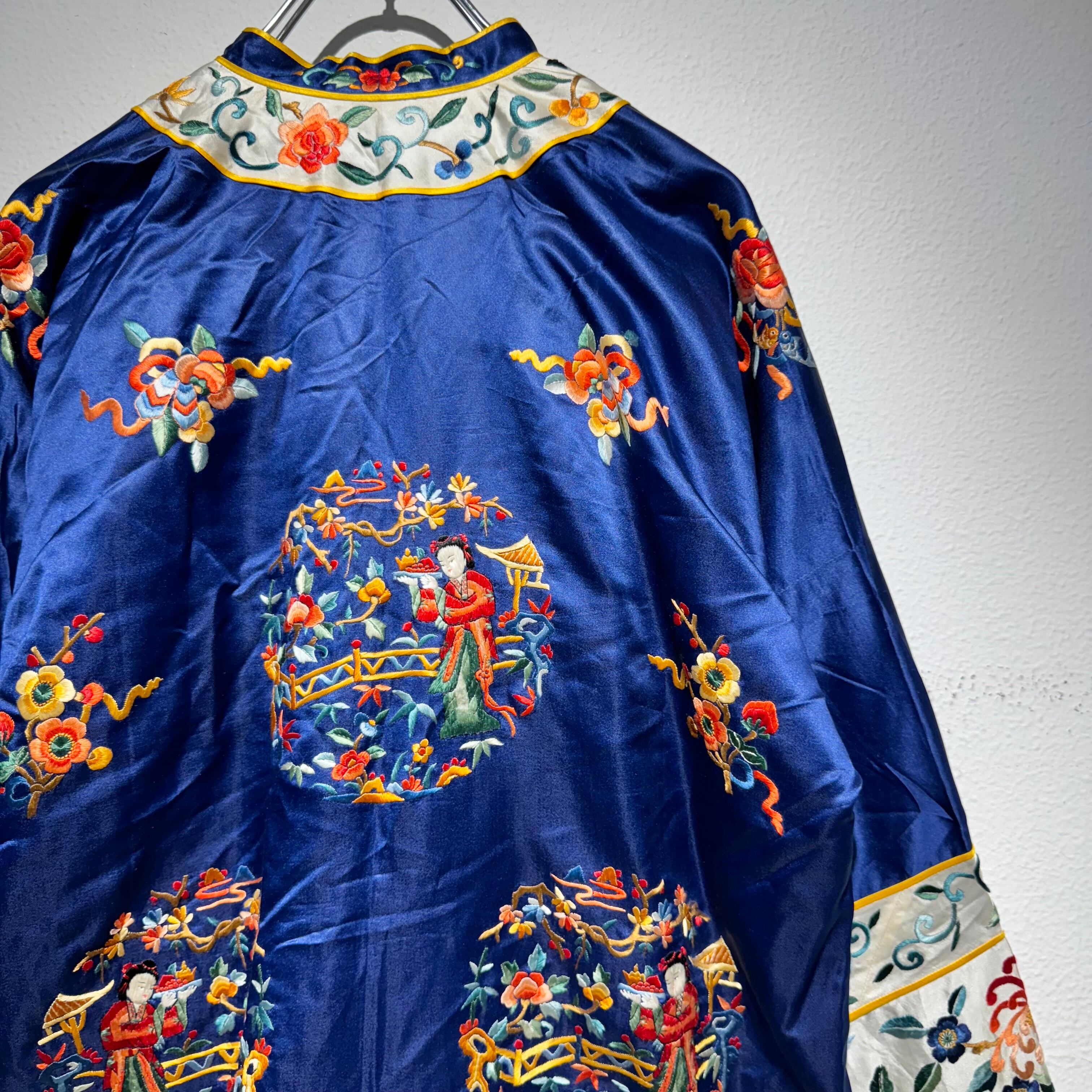 濃いブルーにカラフルな刺繍がたっぷりのチャイナジャケット。