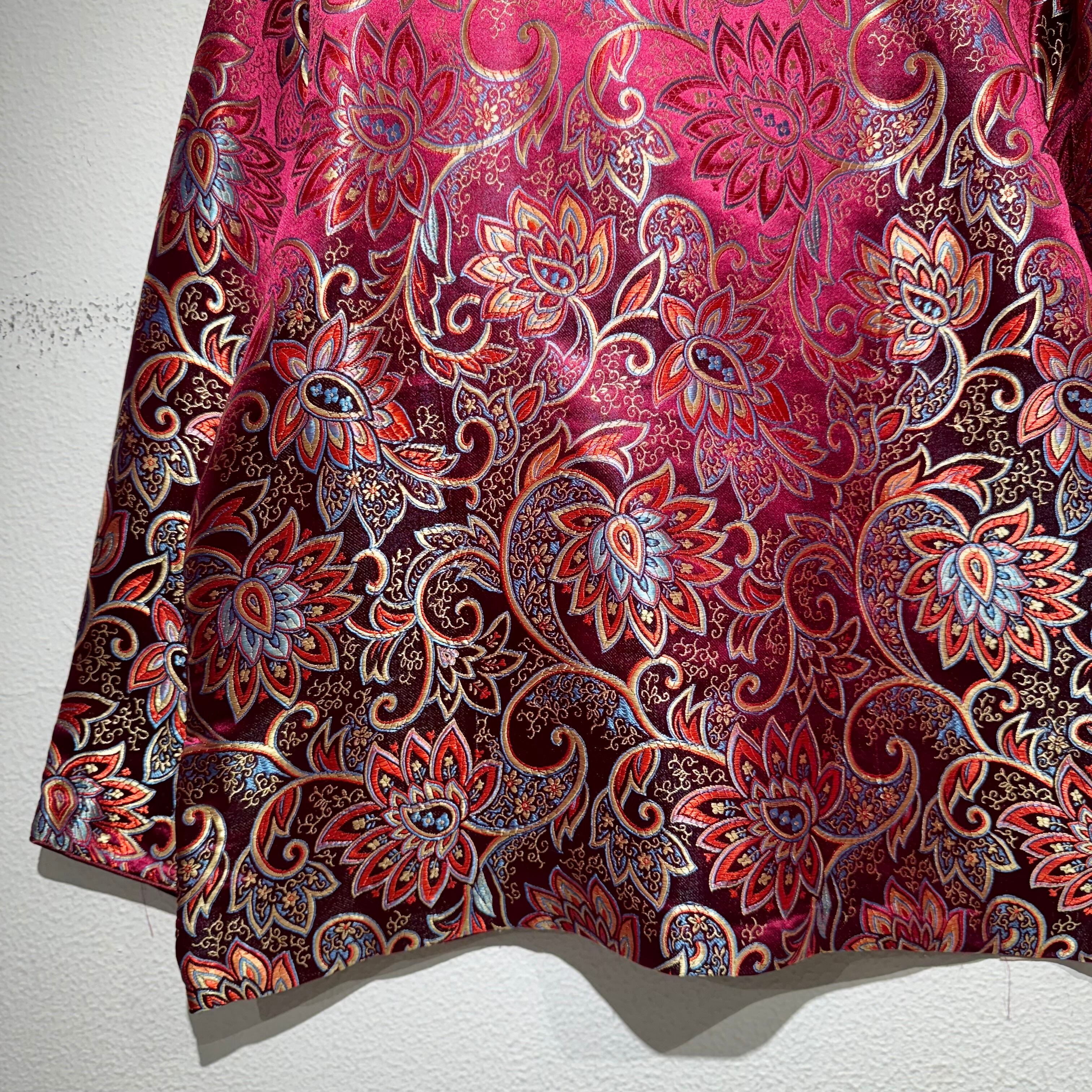 落ち着いたワインレッドに蓮の花の刺繍が施されたチャイナジャケット。