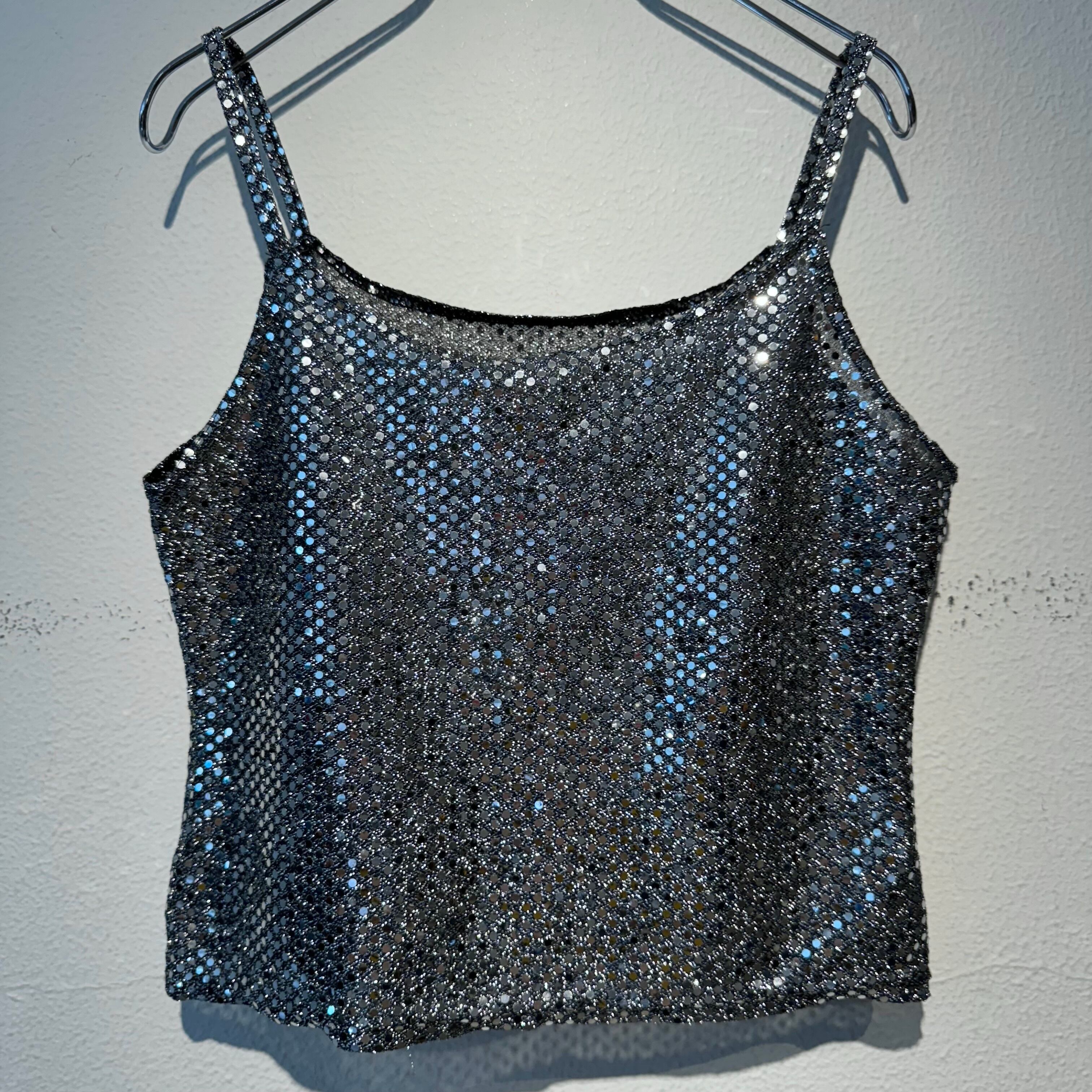 全面のシルバーホログラムがインパクトのあるキャミソール。