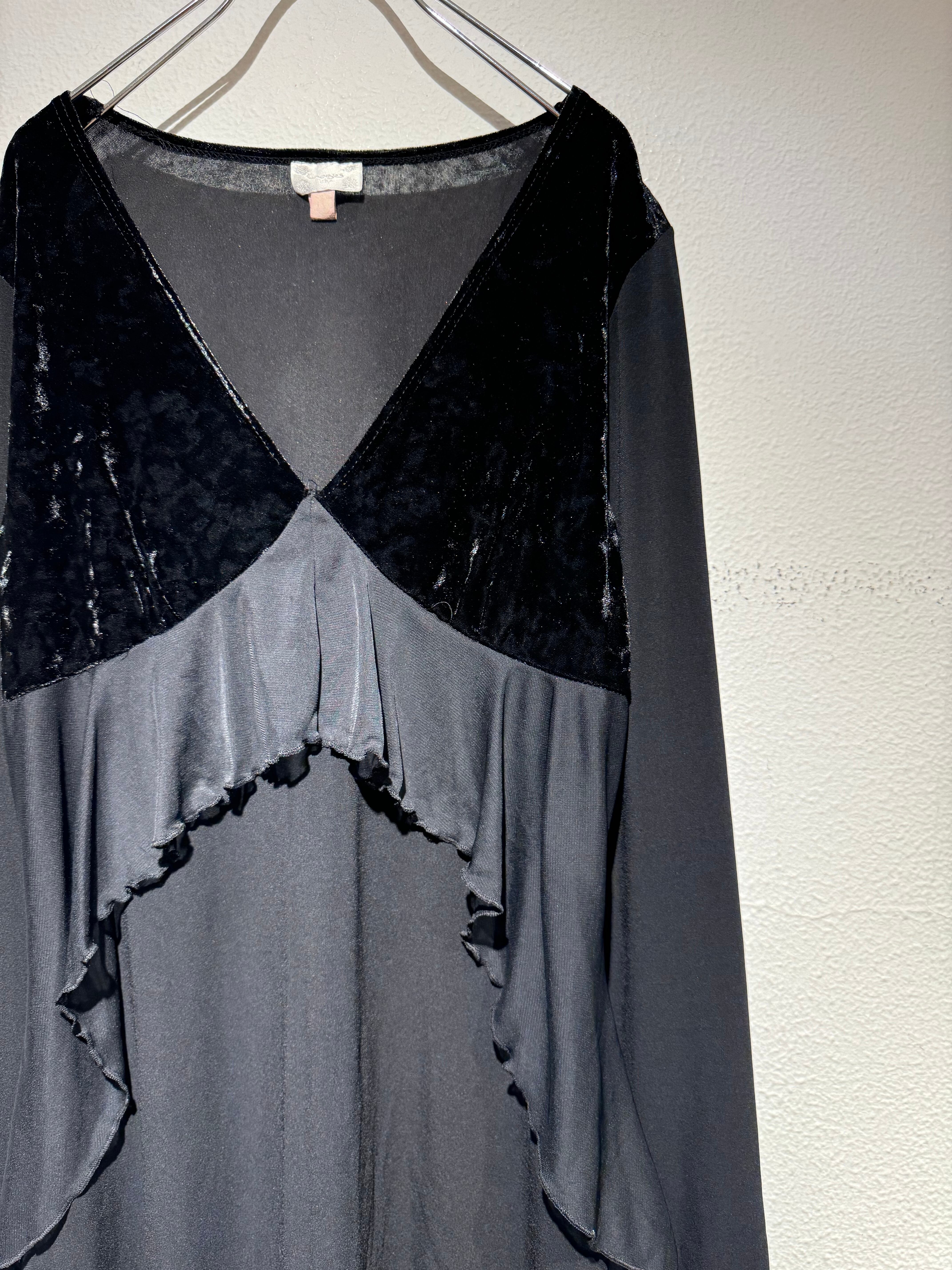 ベロア素材の切り替えや2重のシアーデザインが可愛らしいトップス。