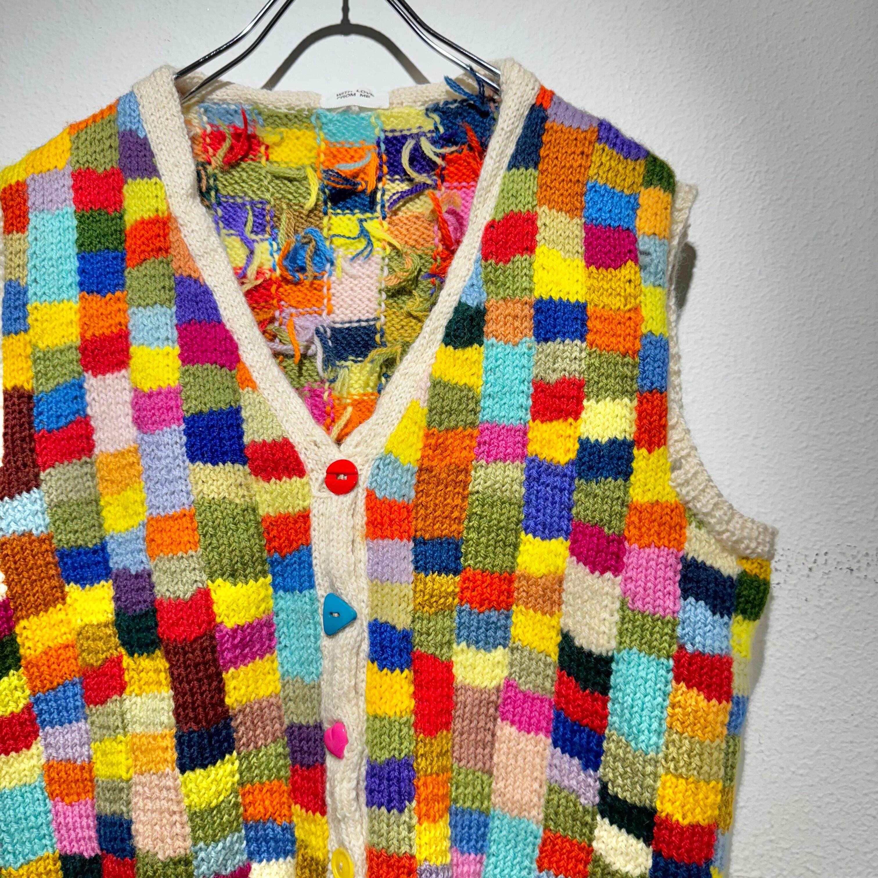 カラフルなブロックチェック柄が可愛らしいベスト。